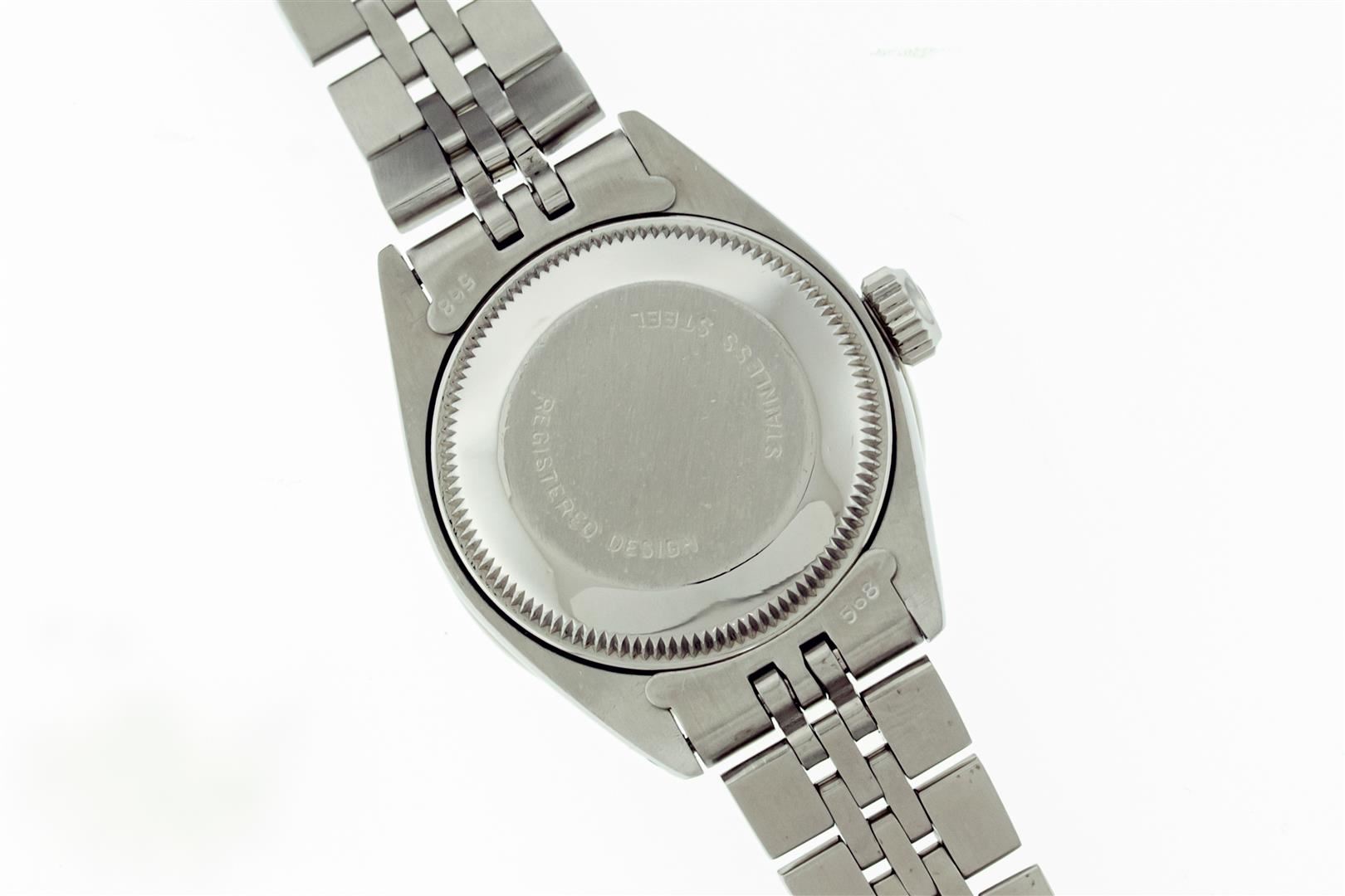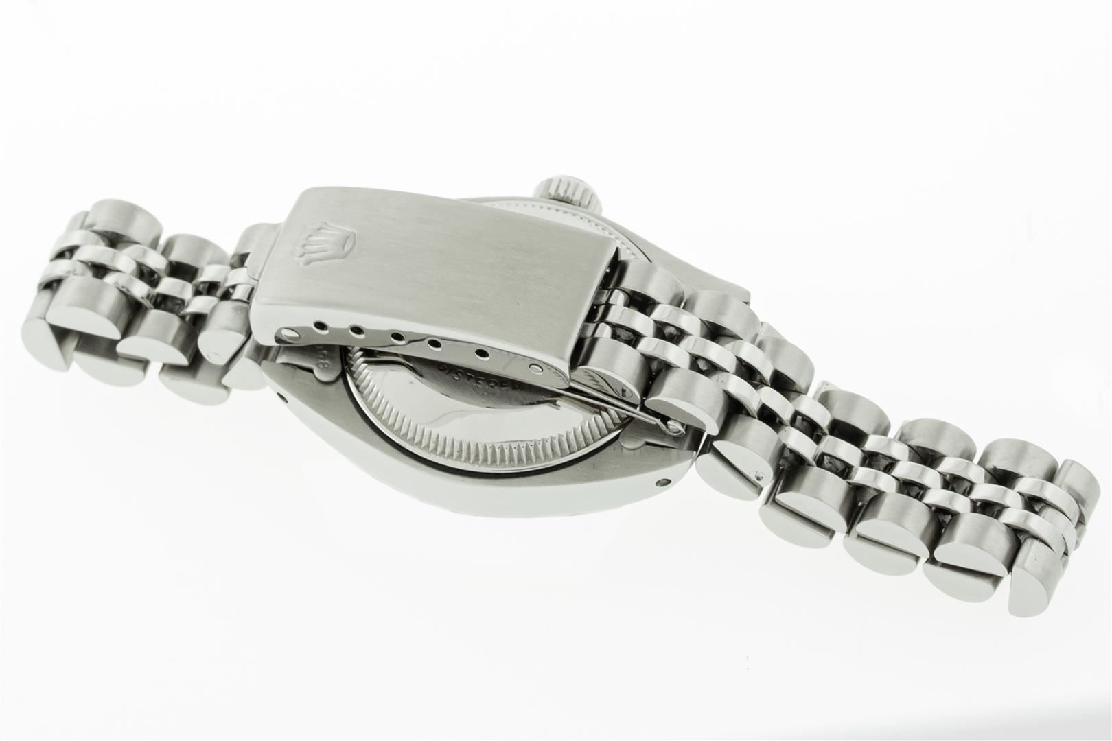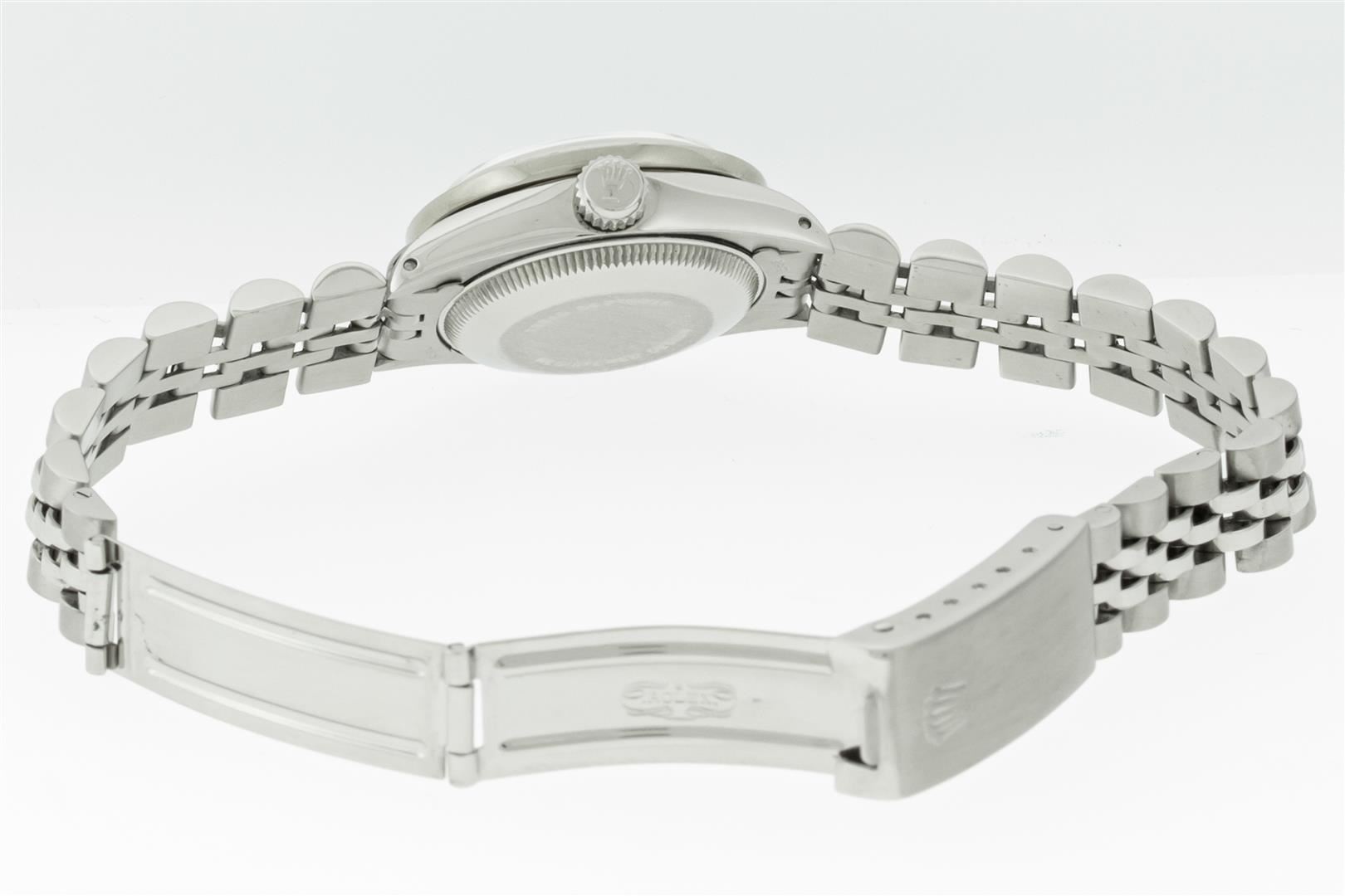 One Ladies Stainless Steel Rolex Datejust Polished Bright with Satin Finish, Serviced & Electronically Tested, Rolex Stainless Steel Case: 26mm, Rolex Stainless Steel Crown, Custom Bezel: New Stainless Steel Beadset Diamond Bezel, Diamond Count: 44 Diamonds Total, Clarity: SI-VS, Color: G to H. Custom Crystal: New Sapphire with Magnified Date Window. Custom Hands: New Luminescent Hands. Rolex Movement: Automatic Winding Movement. Custom Dial: Refinished To Pink with Custom Added Diamond Hour Markers, Diamond Count: 10 Diamonds in Dial G To H In Color, Clarity: SI-VS. Date Window: 3 O'Clock Position Date Display, Model: Datejust. Condition: G-6 Extra Fine. Rolex Bracelet: Stainless Steel Jubilee Band. Bright Polish & Satin Finish. 6.0 Inch Length, Adjustable. Standard Clasp, with Rolex Logo. This Pre Owned Watch Has Been Serviced Time Tested And Is In Excellent Condition It Is Free Of All Scratches And Dents.