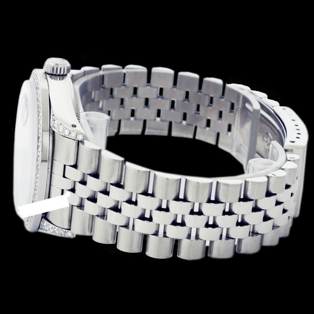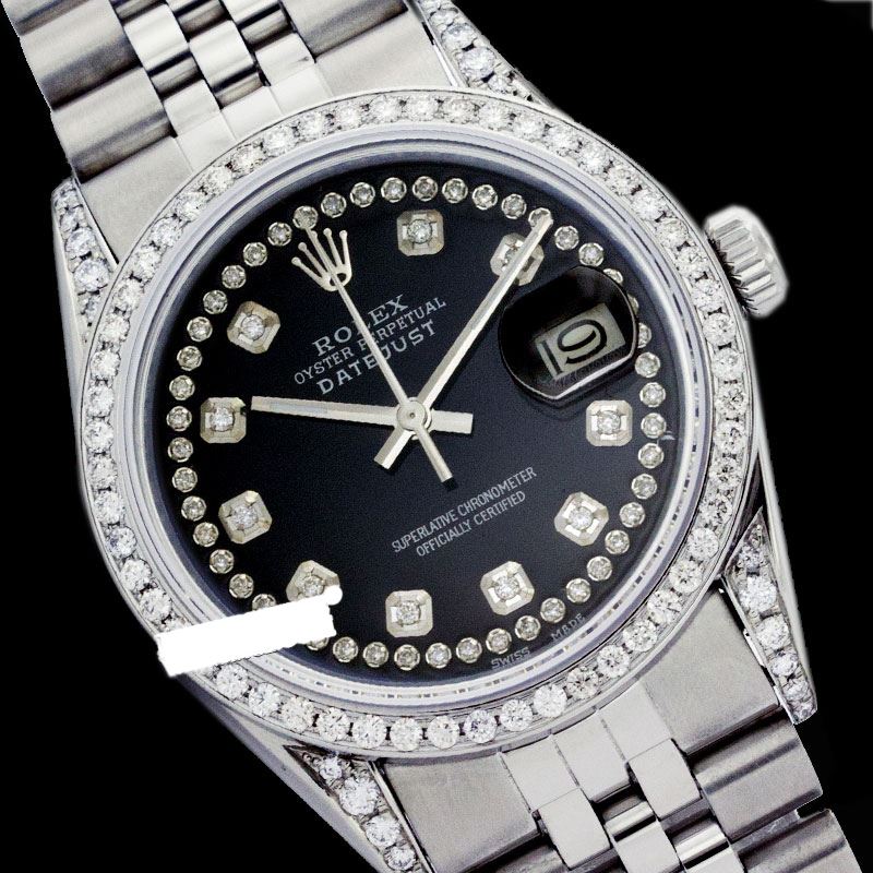 WATCH DETAILS: ITEM: WatchBRAND: RolexTYPE: Stainless SteelFEATURE: MODEL: DateJustMADE: Swiss MadeGENDER: LadiesCONDITION: Pre-OwnedFUNCTION: DateDIAL COLOR: BlackHOUR MARKERS: String Custom Made Diamond + 10 Round Custom Made DiamondBEZEL TYPE: Custom Made Diamond BezelBEZEL STONE: Diamond .80 CTW G-VVS1 BEZEL MATERIAL: 18K GoldBRACELET TYPE: Jubilee BRACELET MATERIAL: Stainless SteelCLASP TYPE: Folding ClaspCLASP MATERIAL: Stainless SteelCASE STONE: .85 CTW G-VVS1 DIAMOND CUSTOMCASE SIZE: 26mmCRYSTAL: Scratch Resistance Sapphire CrystalMOVEMENT: Automatic (Self Winding)CALIBER: 2030CROWN TYPE: Screw Down CrownWATER RESISTANCE: Waterproof to 10 ATM/100 meters/330 feetMODEL #: 6917SKU #: ALSJNS123We Buy/Sell/Trade Valuable watches, Please call us