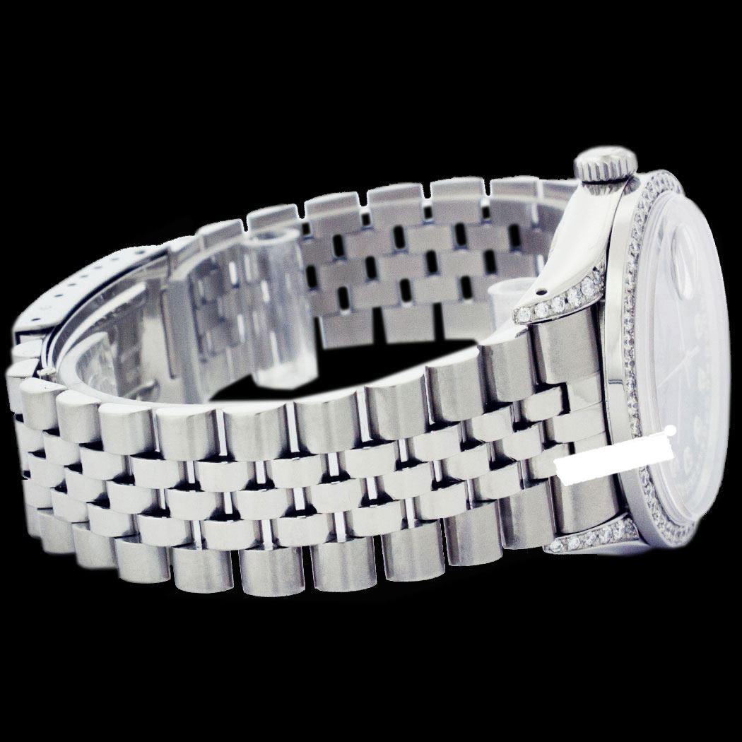 WATCH DETAILS: ITEM: WatchBRAND: RolexTYPE: Stainless SteelFEATURE: MODEL: DateJustMADE: Swiss MadeGENDER: LadiesCONDITION: Pre-OwnedFUNCTION: DateDIAL COLOR: BlackHOUR MARKERS: String Custom Made Diamond + 10 Round Custom Made DiamondBEZEL TYPE: Custom Made Diamond BezelBEZEL STONE: Diamond .80 CTW G-VVS1 BEZEL MATERIAL: 18K GoldBRACELET TYPE: Jubilee BRACELET MATERIAL: Stainless SteelCLASP TYPE: Folding ClaspCLASP MATERIAL: Stainless SteelCASE STONE: .85 CTW G-VVS1 DIAMOND CUSTOMCASE SIZE: 26mmCRYSTAL: Scratch Resistance Sapphire CrystalMOVEMENT: Automatic (Self Winding)CALIBER: 2030CROWN TYPE: Screw Down CrownWATER RESISTANCE: Waterproof to 10 ATM/100 meters/330 feetMODEL #: 6917SKU #: ALSJNS123We Buy/Sell/Trade Valuable watches, Please call us