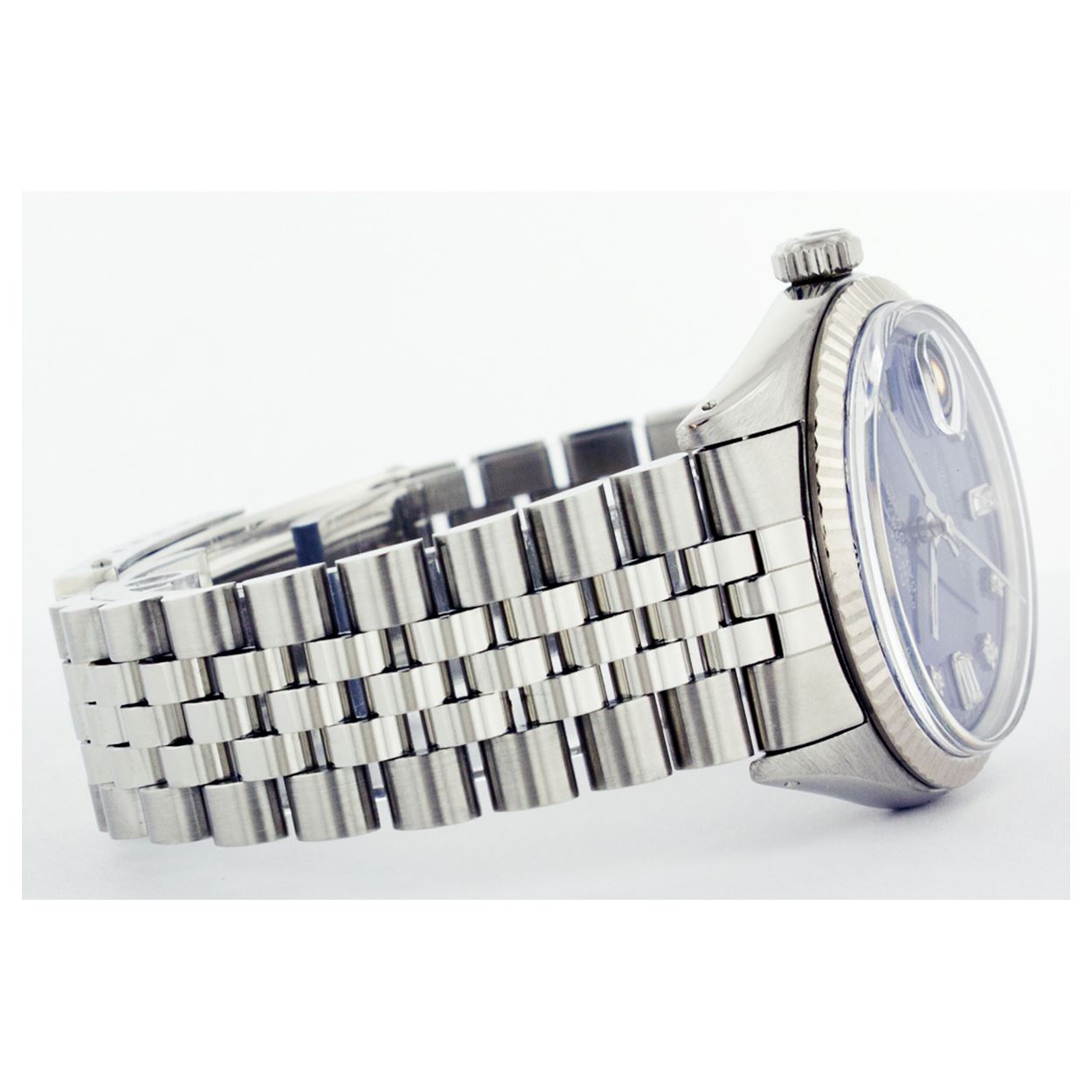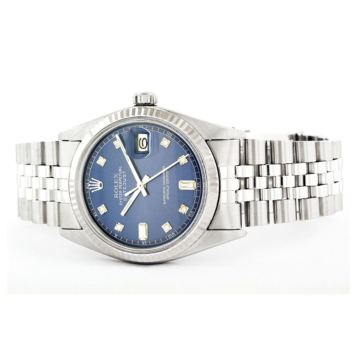 WATCH DETAILS: ITEM: WatchBRAND: RolexTYPE: Stainless SteelFEATURE: MODEL: DateJustMADE: Swiss MadeGENDER: LadiesCONDITION: Pre-OwnedFUNCTION: DateDIAL COLOR: Royal BlueHOUR MARKERS: 8 + 2 , 8 Round and 2 Baguette Custom Made DiamondBEZEL TYPE: Fluted BezelBEZEL STONE: No StoneBEZEL MATERIAL: 18K GoldBRACELET TYPE: Jubilee BRACELET MATERIAL: Stainless SteelCLASP TYPE: Folding ClaspCLASP MATERIAL: Stainless SteelCASE STONE: CASE SIZE: 26mmCRYSTAL: Acrylic MOVEMENT: Automatic (Self Winding)CALIBER: 2030CROWN TYPE: Screw Down CrownWATER RESISTANCE: Waterproof to 10 ATM/100 meters/330 feetMODEL #: 6917SKU #: ALSJNP6We Buy/Sell/Trade Valuable watches, Please call us