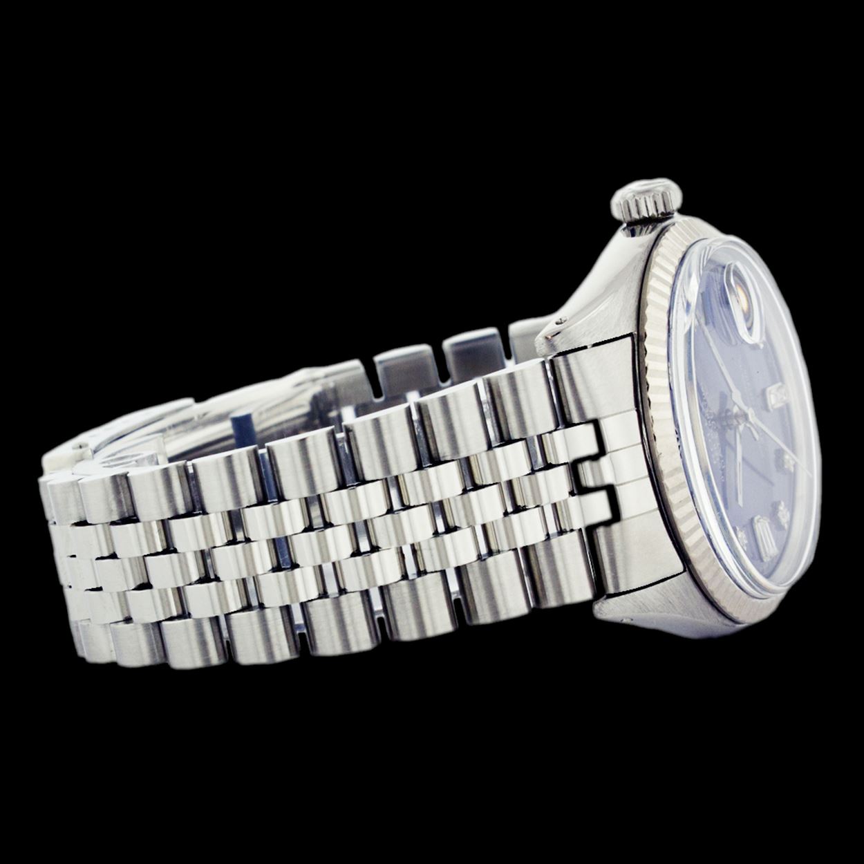 WATCH DETAILS: ITEM: WatchBRAND: RolexTYPE: Stainless SteelFEATURE: MODEL: DateJustMADE: Swiss MadeGENDER: LadiesCONDITION: Pre-OwnedFUNCTION: DateDIAL COLOR: Royal BlueHOUR MARKERS: 8 + 2 , 8 Round and 2 Baguette Custom Made DiamondBEZEL TYPE: Fluted BezelBEZEL STONE: No StoneBEZEL MATERIAL: 18K GoldBRACELET TYPE: Jubilee BRACELET MATERIAL: Stainless SteelCLASP TYPE: Folding ClaspCLASP MATERIAL: Stainless SteelCASE STONE: CASE SIZE: 26mmCRYSTAL: Acrylic MOVEMENT: Automatic (Self Winding)CALIBER: 2030CROWN TYPE: Screw Down CrownWATER RESISTANCE: Waterproof to 10 ATM/100 meters/330 feetMODEL #: 6917SKU #: ALSJNP6We Buy/Sell/Trade Valuable watches, Please call us