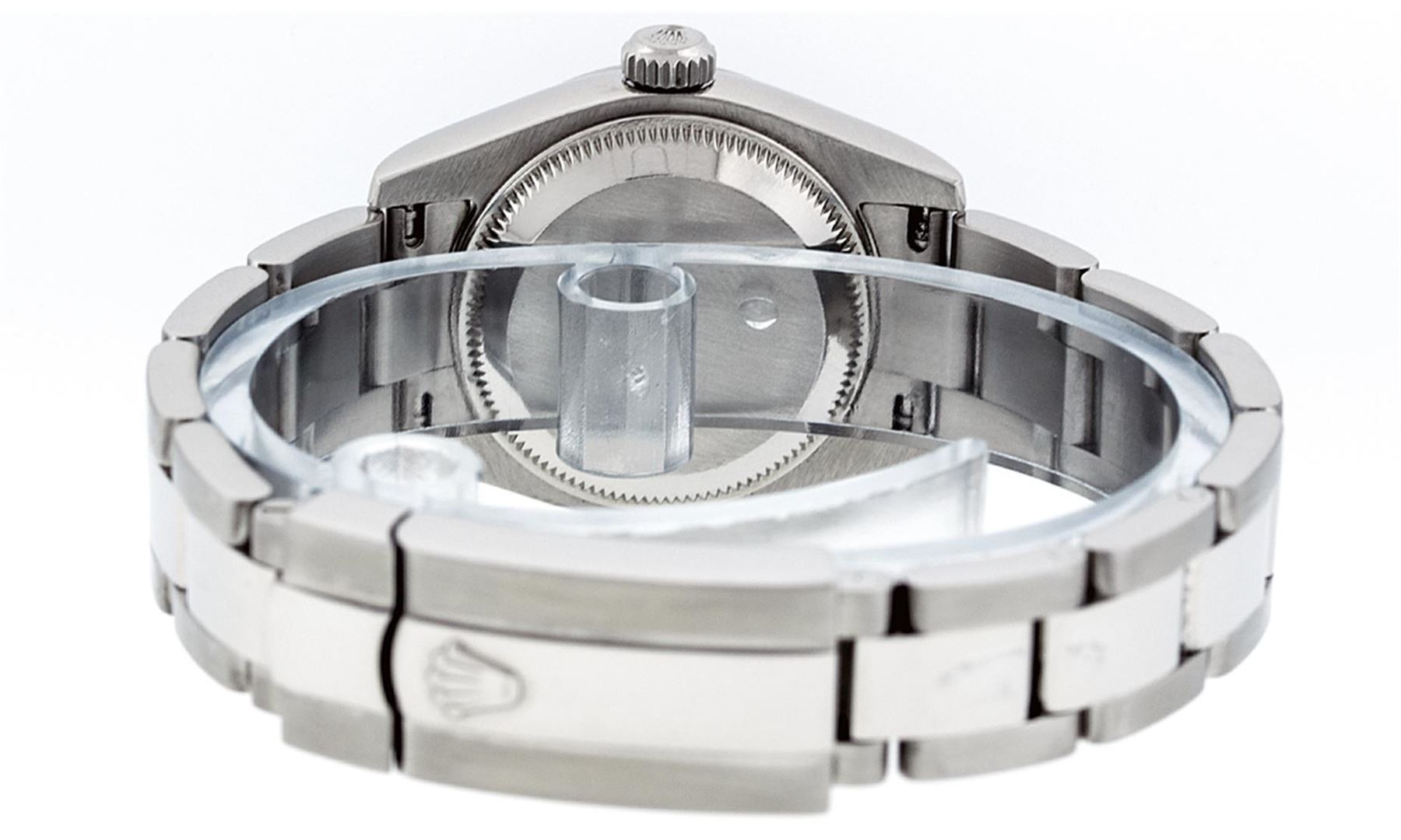 One Ladies Quickset Stainless Steel Rolex Datejust Polished Bright with Satin Finish, Serviced & Electronically Tested, Stainless Steel Case: 26mm, Stainless Steel Crown, Bezel: Stainless Steel Smooth Bezel. Custom Crystal: New Scratch Resistant Sapphire Cyclops Lens. Custom Hands: New Luminescent Hands. Movement: Automatic Winding Movement Caliber 2235. Custom Dial: Green Vignette Single Cut VS Diamond Dial, Diamond Count: 10 Single Cut Diamonds In Dial, Color: G to H, Clarity: VS. Date Window: 3 O'Clock Position Date Display, Model: 179160 Quickset Datejust. Condition: G-6 Extra Fine. Bracelet: Stainless Steel Oyster Band. Bright Polish & Satin Finish. 6.0 Inch Length, Adjustable. Standard Clasp, With Rolex Logo. This Watch Has Been Serviced Time Tested And Is In Excellent Condition It Is Free Of All Scratches And Dents. This Watch Comes With A Rolex Box.