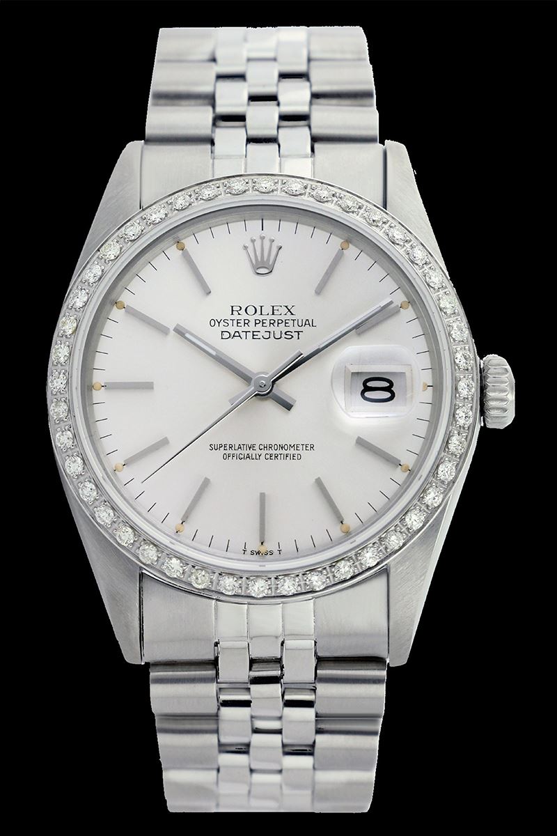WATCH DETAILS: ITEM: WatchBRAND: RolexTYPE: Stainless SteelFEATURE: MODEL: DateJustMADE: Swiss MadeGENDER: LadiesCONDITION: Pre-OwnedFUNCTION: DateDIAL COLOR: SilverHOUR MARKERS: Index BarBEZEL TYPE: Custom Made Diamond BezelBEZEL STONE: Diamond .80 CTW G-VVS1 BEZEL MATERIAL: 18K GoldBRACELET TYPE: Jubilee BRACELET MATERIAL: Stainless SteelCLASP TYPE: Folding ClaspCLASP MATERIAL: Stainless SteelCASE STONE: CASE SIZE: 26mmCRYSTAL: Scratch Resistance Sapphire CrystalMOVEMENT: Automatic (Self Winding)CALIBER: 2030CROWN TYPE: Screw Down CrownWATER RESISTANCE: Waterproof to 10 ATM/100 meters/330 feetMODEL #: 6917SKU #: ALSJNS21We Buy/Sell/Trade Valuable watches, Please call us