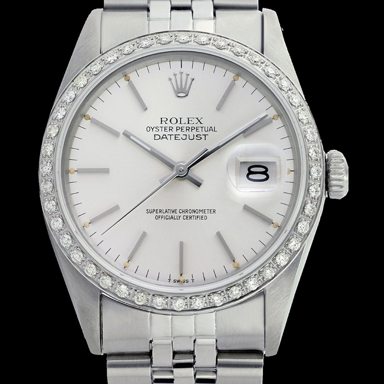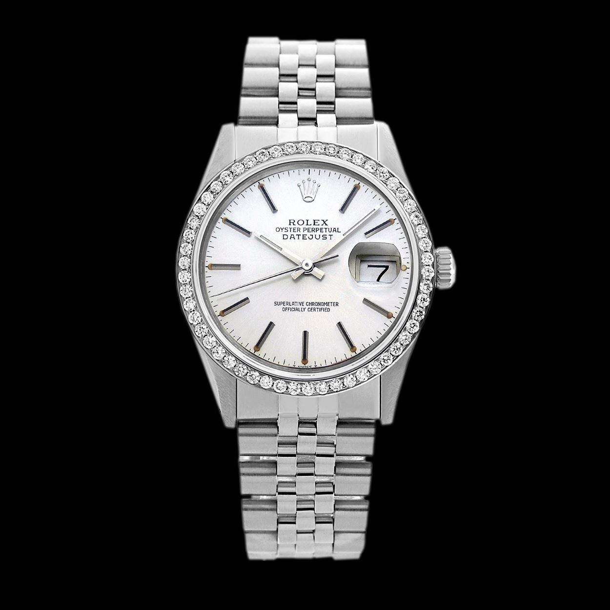 Rolex Ladies Stainless Steel, Index Bar Dial with Diamond Bezel, Sapphire CrystalThis watch is in Excellent Condition.