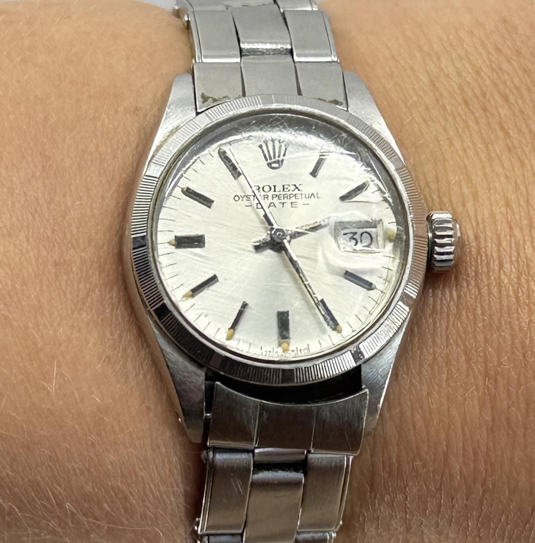 Reference 6919. 28mm. White Dial. Stretch Rivet Bracelet. Running. No box or papers.