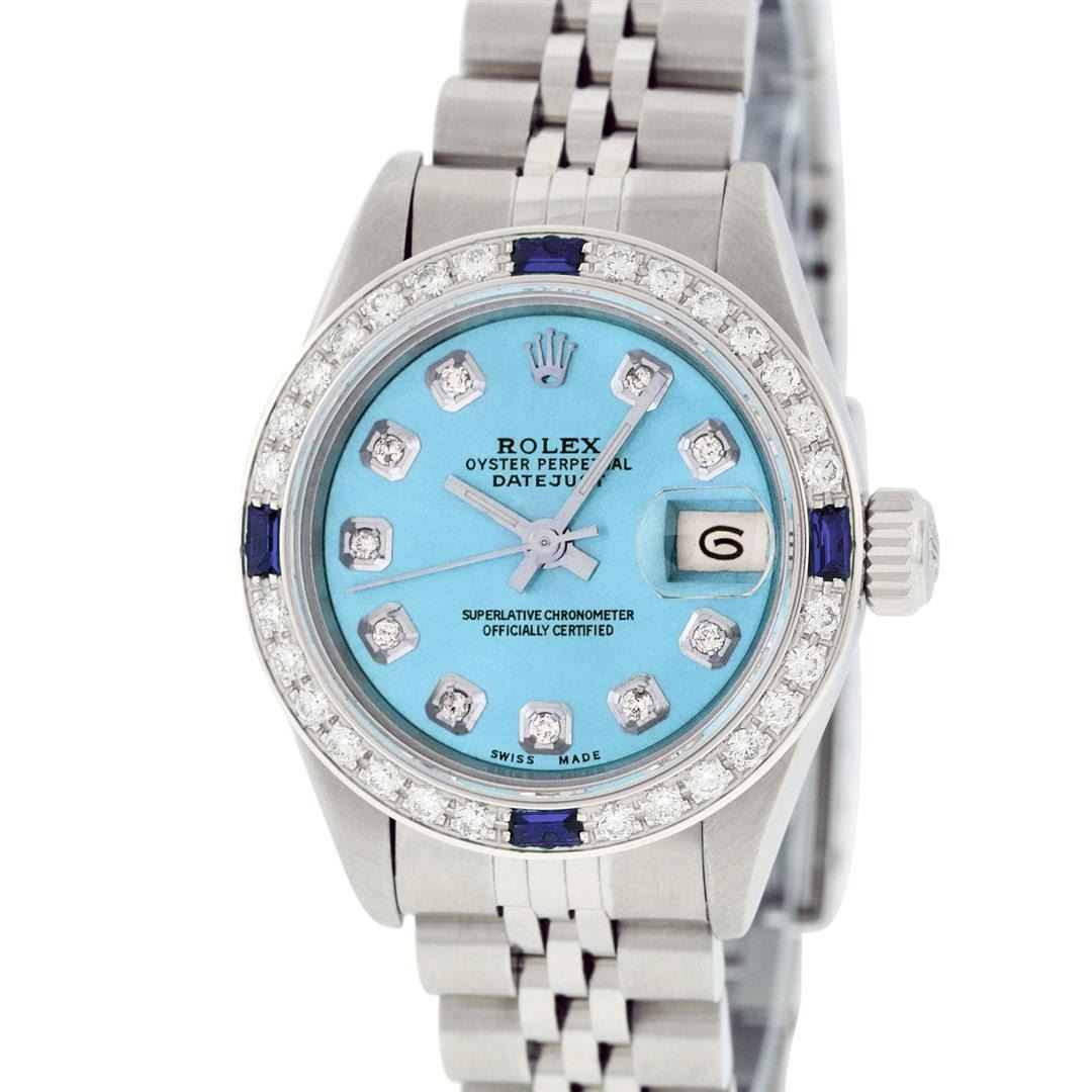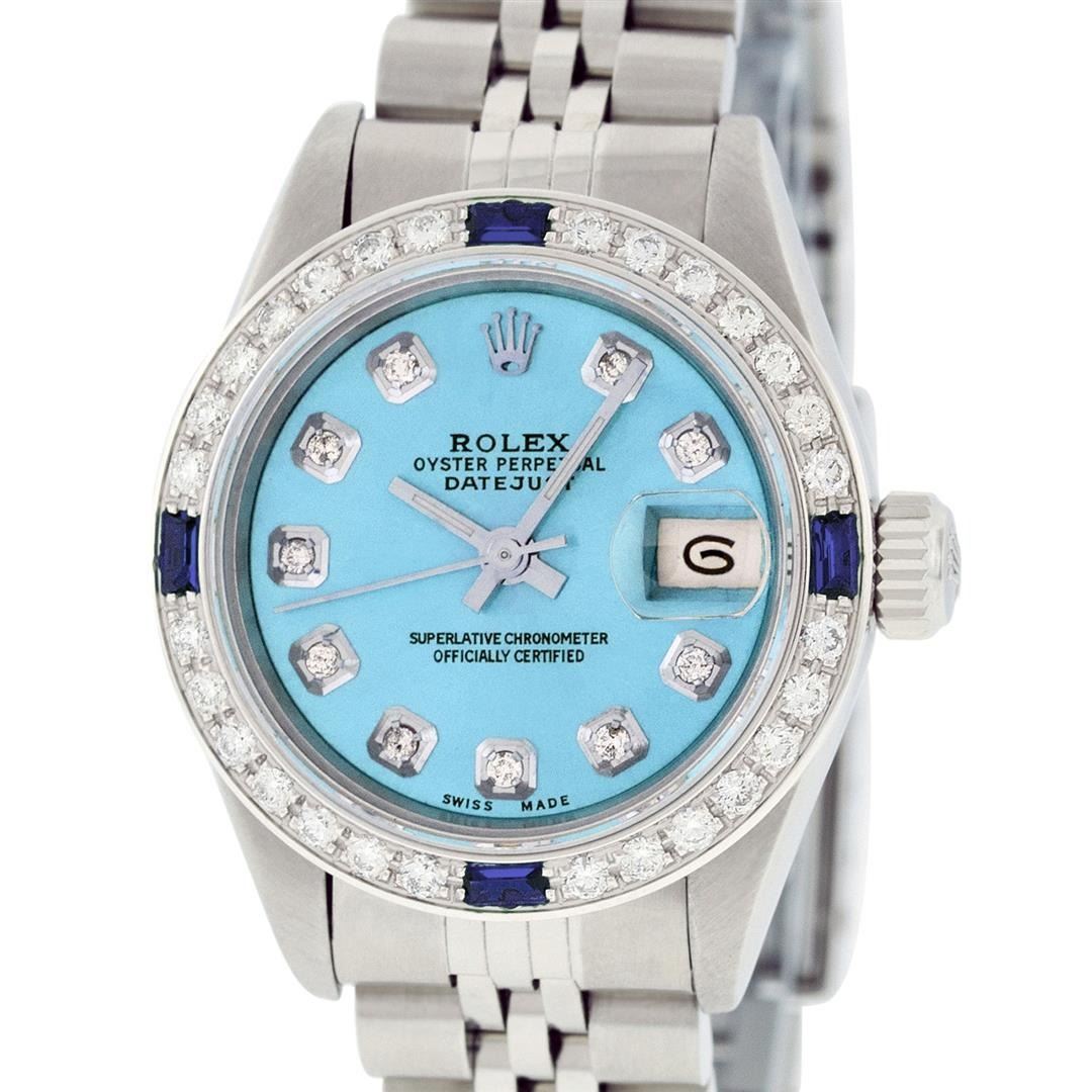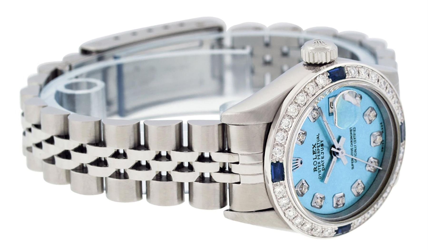 Rolex Quickset Ladies Stainless Steel Pre Owned Datejust Polished Bright with Satin Finish, Serviced & Electronically Tested, Stainless Steel Case: 26mm, Stainless Steel Crown, Custom Bezel: New 18K White Gold Diamond + Sapphire Beadset Diamond Bezel, Sto