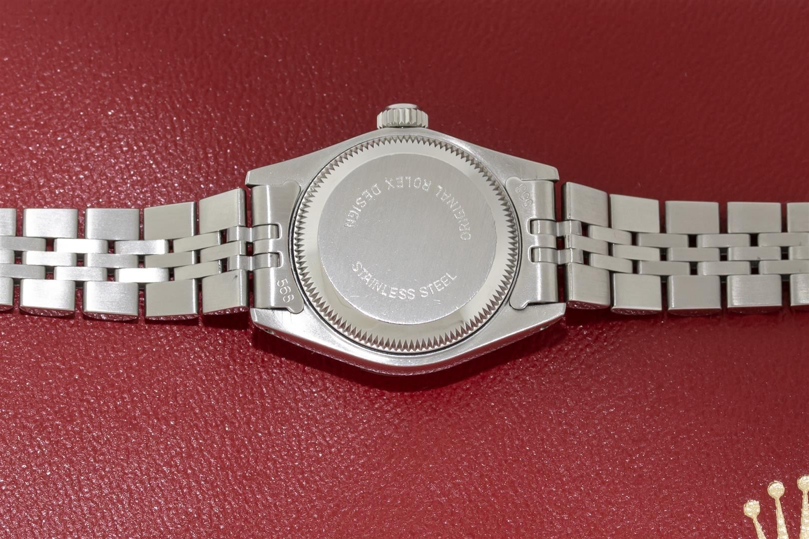 One Ladies Quickset Pre Owned Stainless Steel Rolex Datejust Polished Bright with Satin Finish, Serviced & Electronically Tested, Rolex Stainless Steel Case: 26mm, Rolex Stainless Steel Crown, Rolex Bezel: 18K White Gold Fluted Bezel, Custom Crystal: New With Magnifying Date Window. Rolex Hands: Luminescent Hands. Rolex Movement: Automatic Winding Movement. Rolex Dial: Silver Dial With Index Hour Markers And Lumi Dots. Date Window: 3 O'Clock Position Date Display, Model: Datejust. Condition: G-6 Extra Fine. Rolex Bracelet: Stainless Steel Jubilee Band. Bright Polish & Satin Finish. 6.0 Inch Length, Adjustable. Standard Clasp, With Rolex Logo. This Watch Has Been Serviced Time Tested And Is In Excellent Condition It Is Free Of All Scratches And Dents. This Watch Comes With A Rolex Box And Booklets.