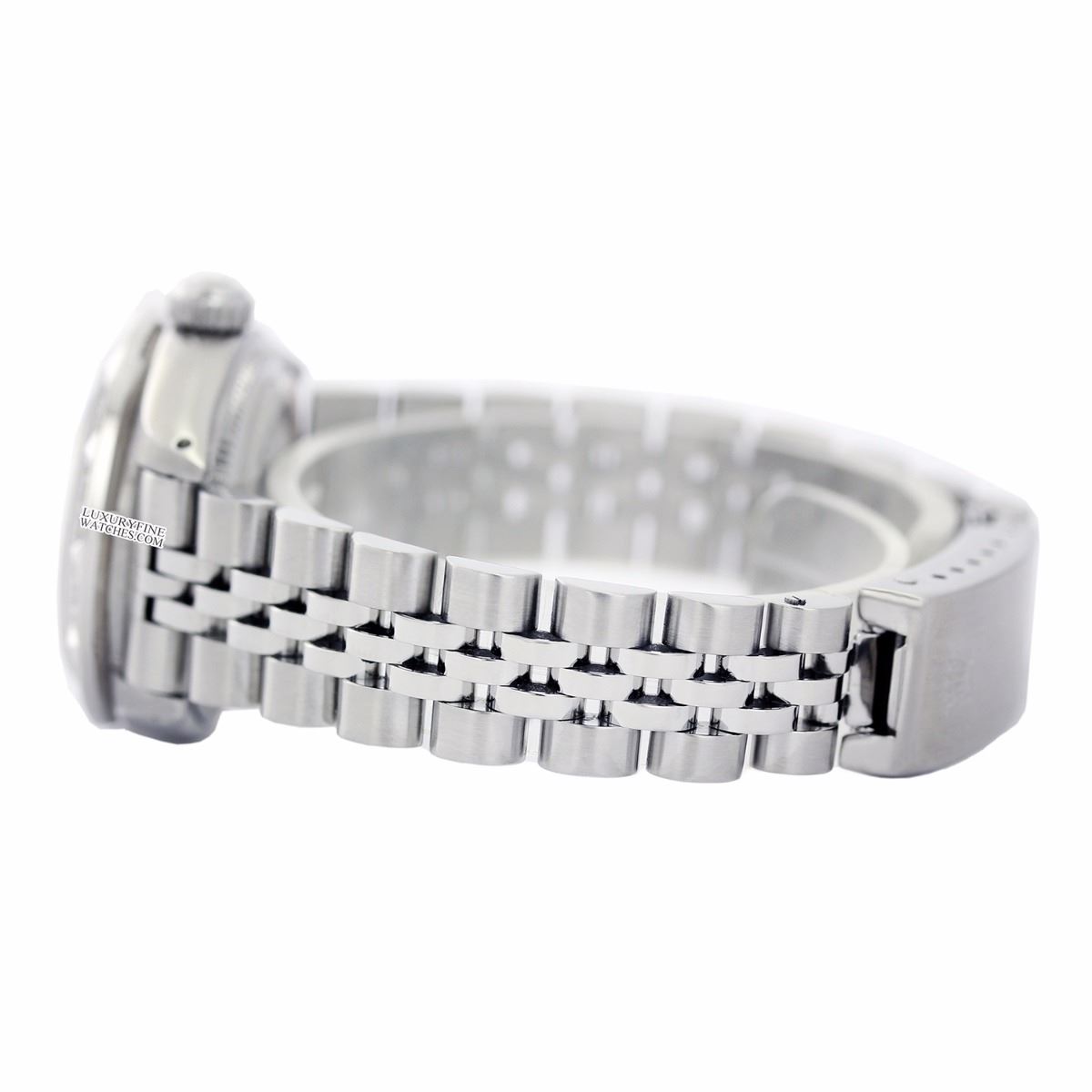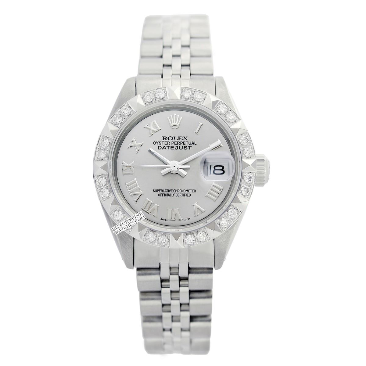 Pre-owned Rolex Ladies Stainless Steel, Roman Dial with Pyramid Diam Bezel, Sapphire Crystal This watch is in Excellent Condition.