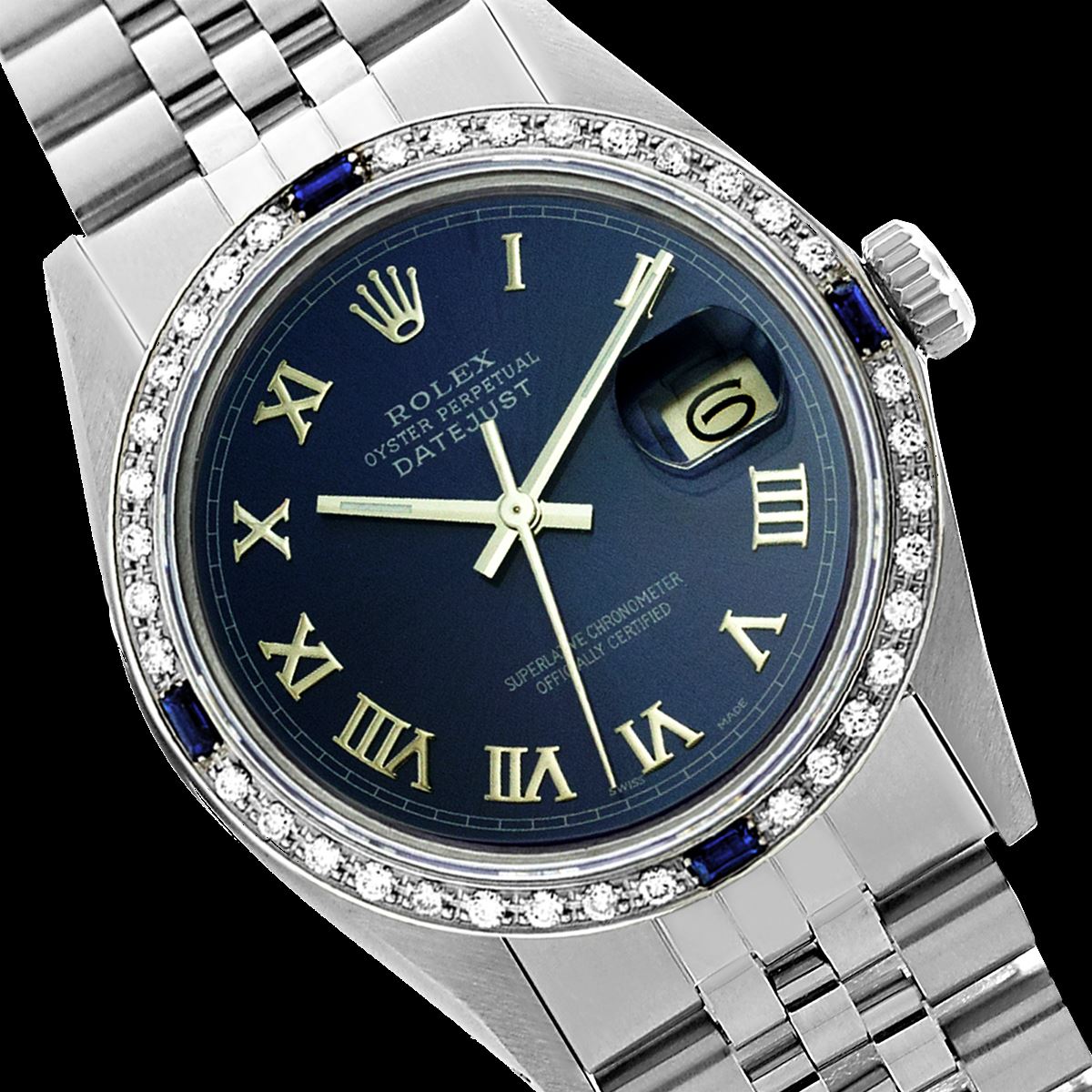 WATCH DETAILS: ITEM:     WatchBRAND:     RolexTYPE:     Stainless SteelFEATURE:     MODEL:     DateJustMADE:     Swiss MadeGENDER:     LadiesCONDITION:     Pre-OwnedFUNCTION:     DateDIAL COLOR:     Royal BlueHOUR MARKERS:     RomanBEZEL TYPE:     Custom Made Diamond & Sapphire BezelBEZEL STONE:     Diamond 1 CTW G-VVS1  & Ceylon Blue SapphireBEZEL MATERIAL:     18K GoldBRACELET TYPE:     Jubilee BRACELET MATERIAL:     Stainless SteelCLASP TYPE:     Folding ClaspCLASP MATERIAL:     Stainless SteelCASE STONE:     CASE SIZE:     26mmCRYSTAL:      Scratch Resistance Sapphire CrystalMOVEMENT:     Automatic (Self Winding)CALIBER:     2030CROWN TYPE:     Screw Down CrownWATER RESISTANCE:     Waterproof to 10 ATM/100 meters/330 feetMODEL #:     6917SKU #:     ALSJNS27We Buy/Sell/Trade Valuable watches, Please call us