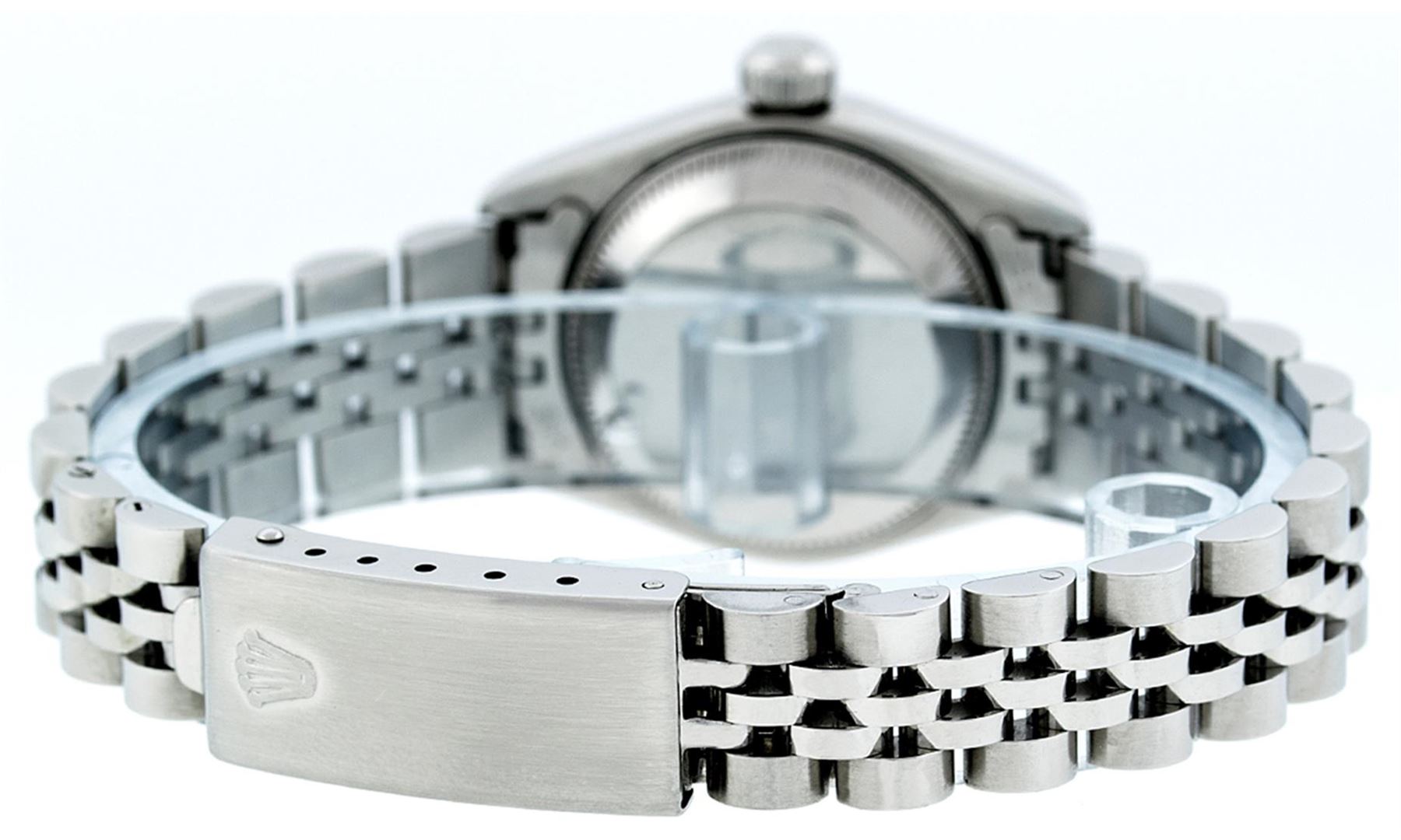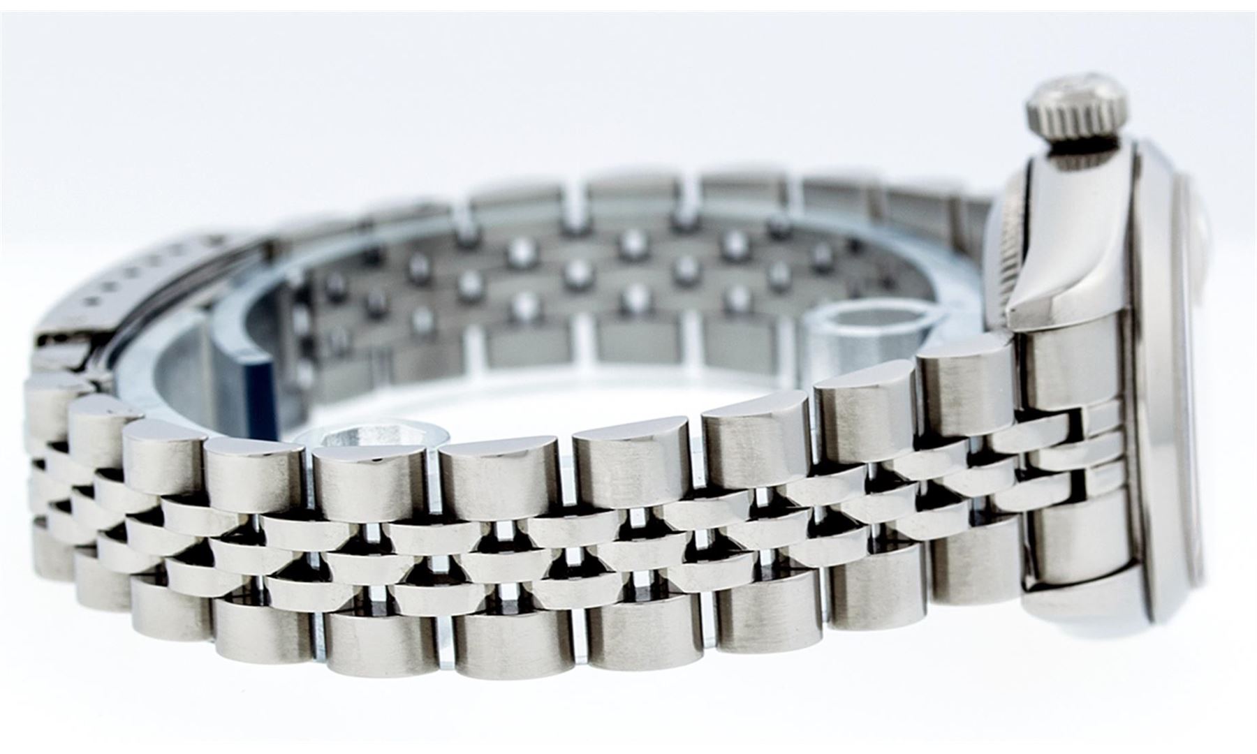 One Ladies Quickset Stainless Steel Rolex Datejust Polished Bright with Satin Finish, Serviced & Electronically Tested, Stainless Steel Case: 26mm, Stainless Steel Crown, Bezel: Stainless Steel Smooth Bezel. Custom Crystal: New Scratch Resistant Sapphire Cyclops Lens. Custom Hands: New Luminescent Hands. Movement: Automatic Winding Movement. Dial: Silver Index Dial With Luminescent Dots & Dash Track. Date Window: 3 O'Clock Position Date Display, Model: Quickset Datejust. Condition: G-6 Extra Fine. Bracelet: Stainless Steel Jubilee Band. Bright Polish & Satin Finish. 6.0 Inch Length, Adjustable. Standard Clasp, With Rolex Logo. This Watch Has Been Serviced Time Tested And Is In Excellent Condition It Is Free Of All Scratches And Dents. This Watch Comes With A Rolex Box.