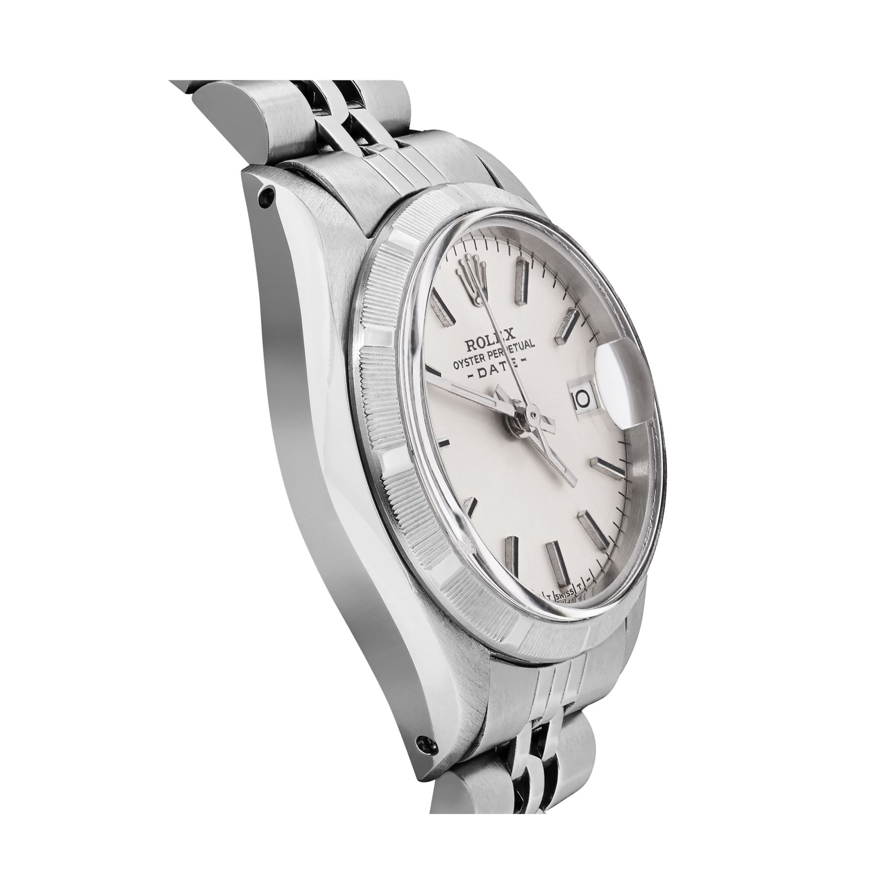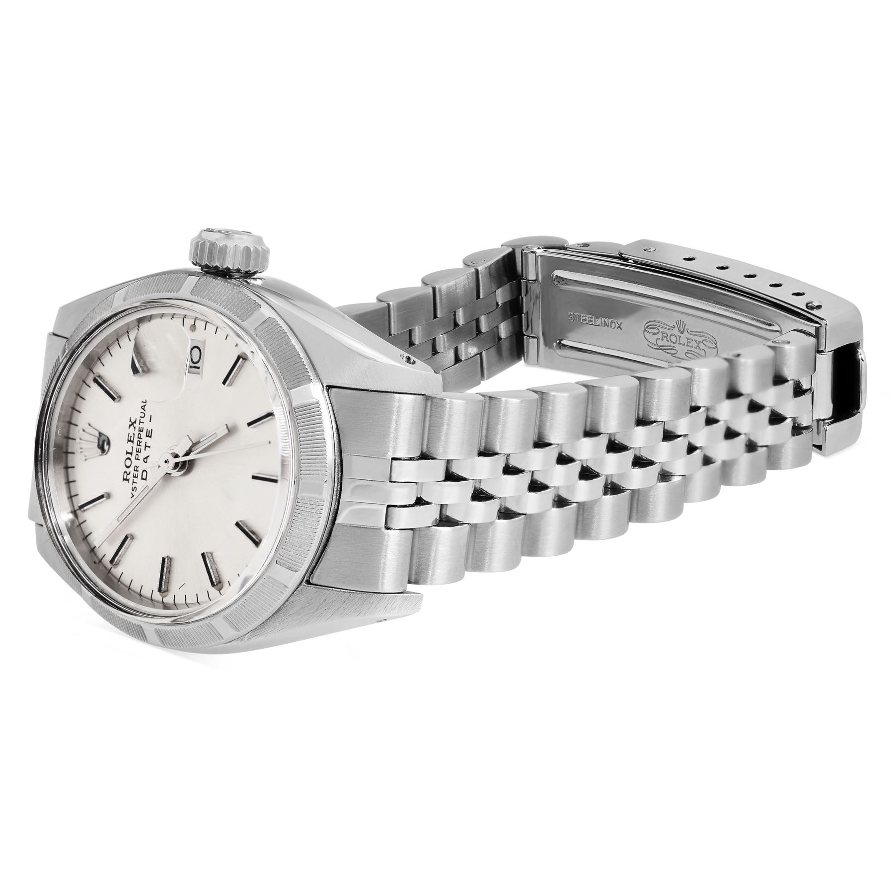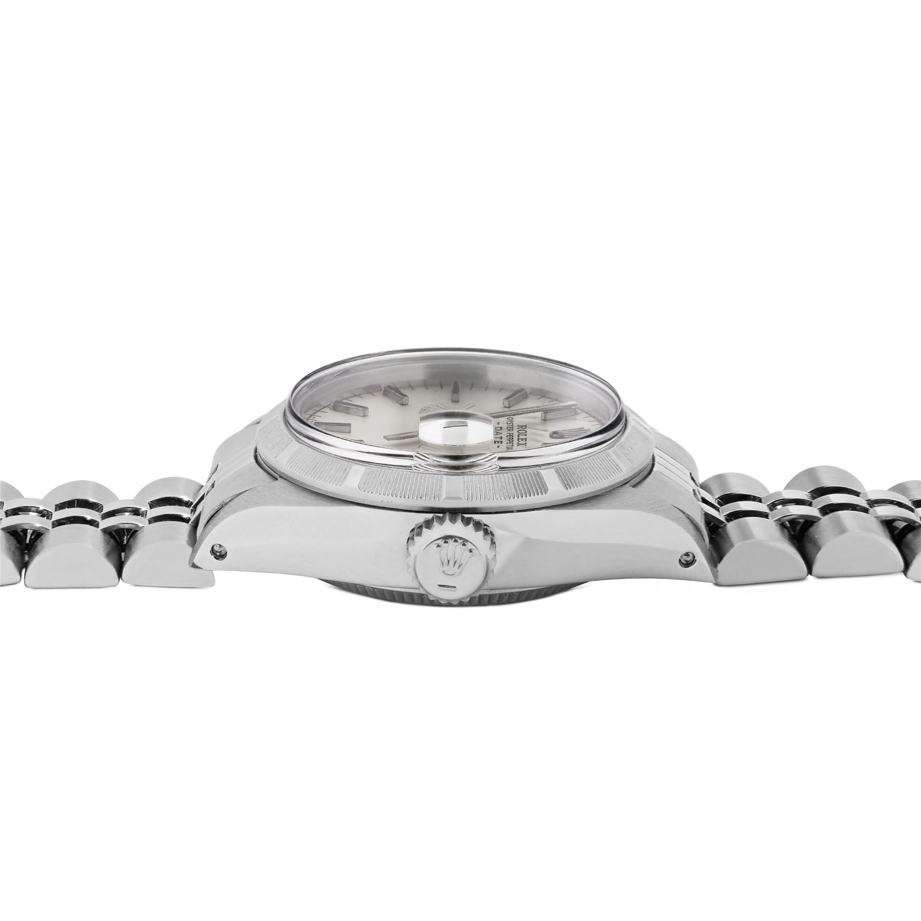 The Watch Features an Original Rolex Silver Index Dial a Rolex Stainless Steel Engine Turn bezel and a Rolex Jubilee Bracelet. This Watch is in Very Good Condition, It Has Been Polished and Serviced. It Will Be Time Tested Before it is Shipped Out.