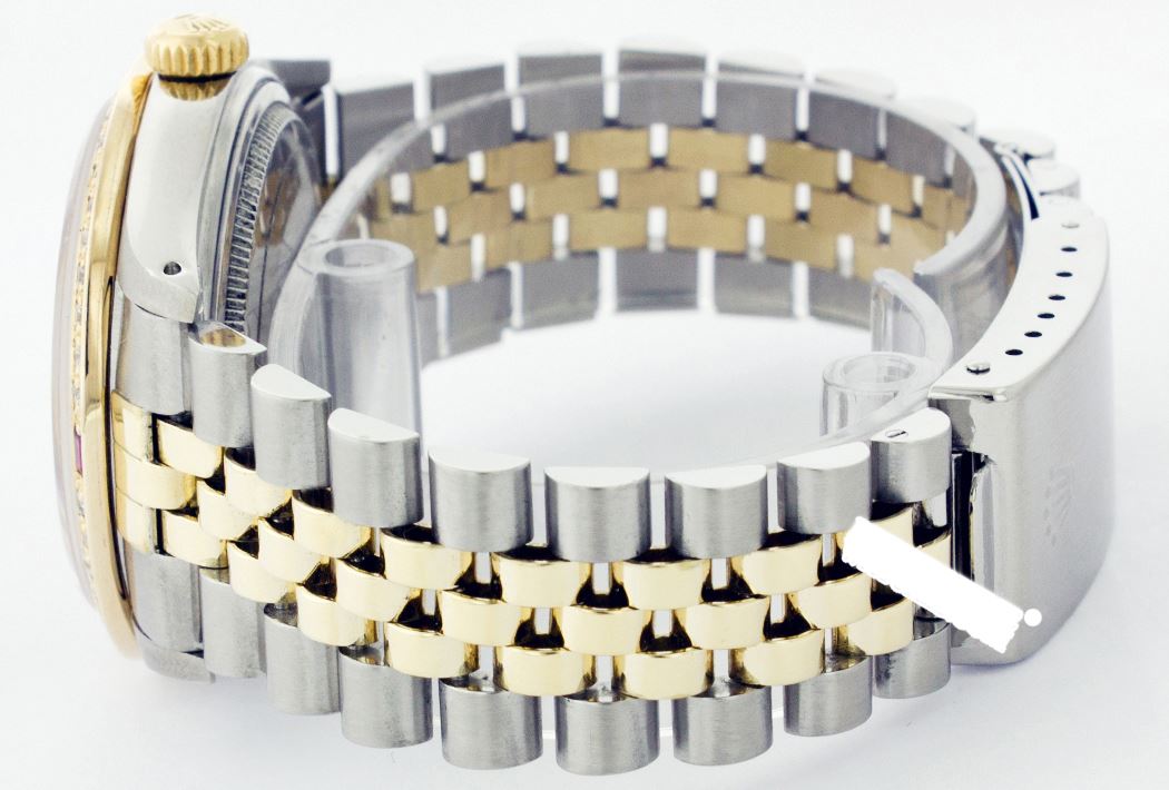 REF-368M7H ---- Rolex Ladies Two Tone 14K Gold/ss, Diam Dial & Diam/Ruby Bezel, Saph CrystalThis watch is in Excellent Condition.