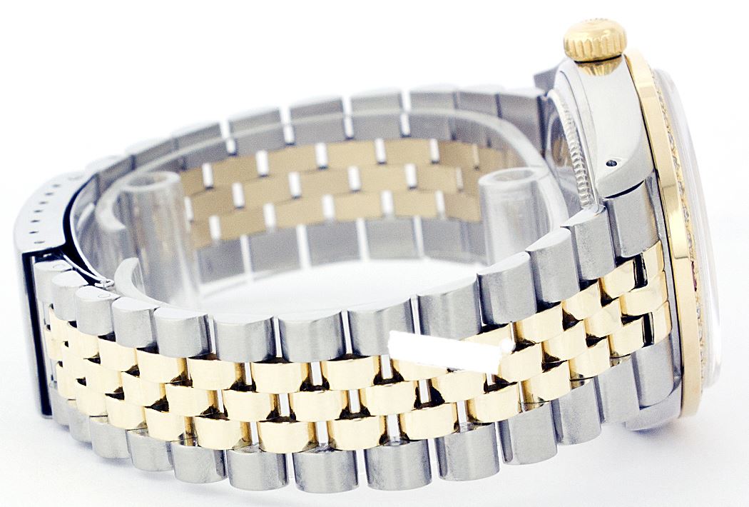 REF-434K5T ---- Rolex Ladies Two Tone 14K Gold/ss, Diam Dial & Diam/Ruby Bezel, Sapphire CrystalThis watch is in Excellent Condition.