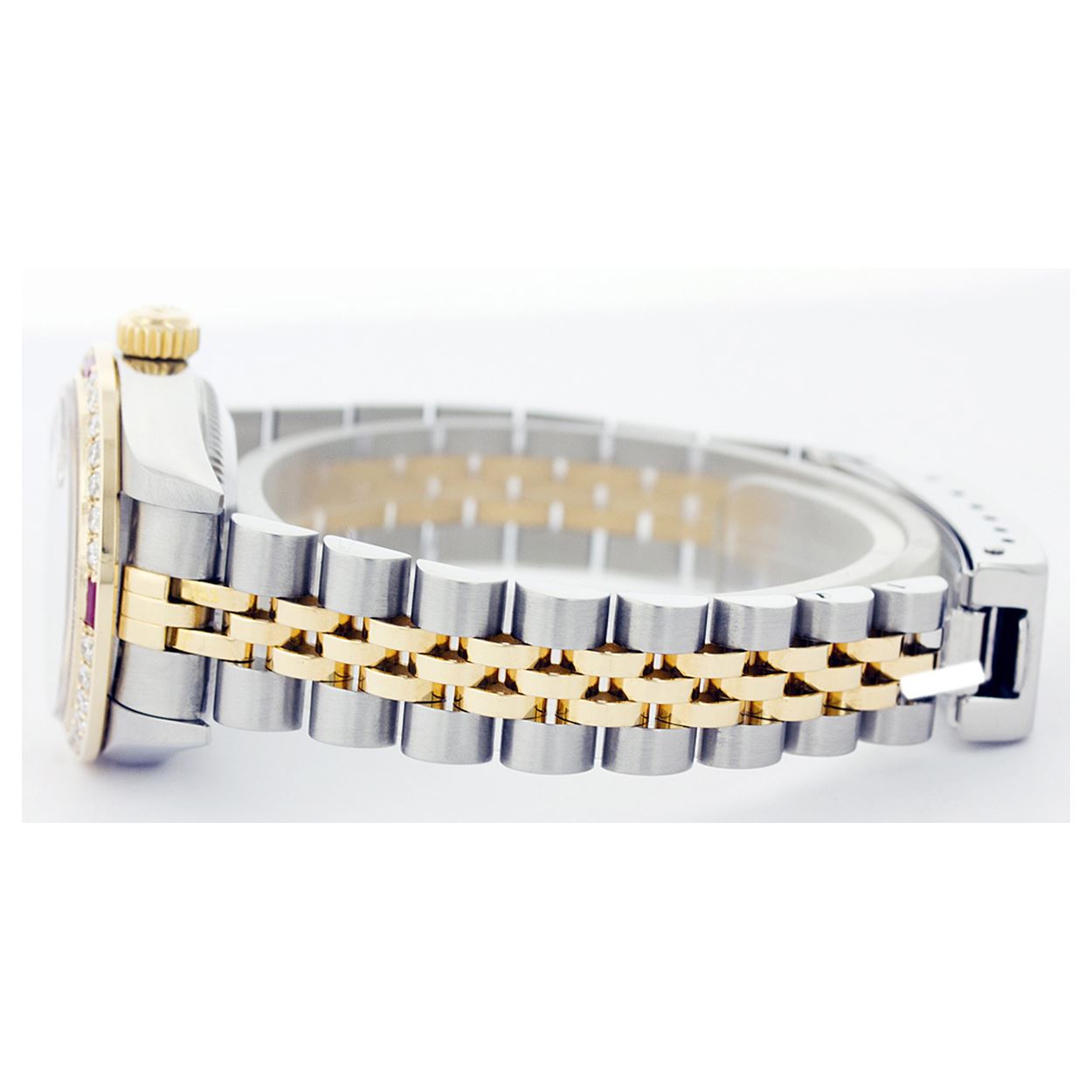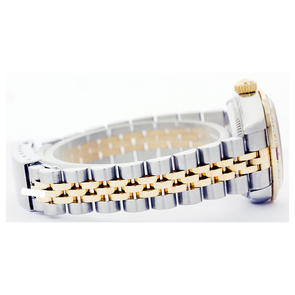 REF-434W4H ---- Rolex Ladies Two Tone 14K Gold/ss, Diam Dial & Diam/Ruby Bezel, Sapphire CrystalThis watch is in Excellent Condition.