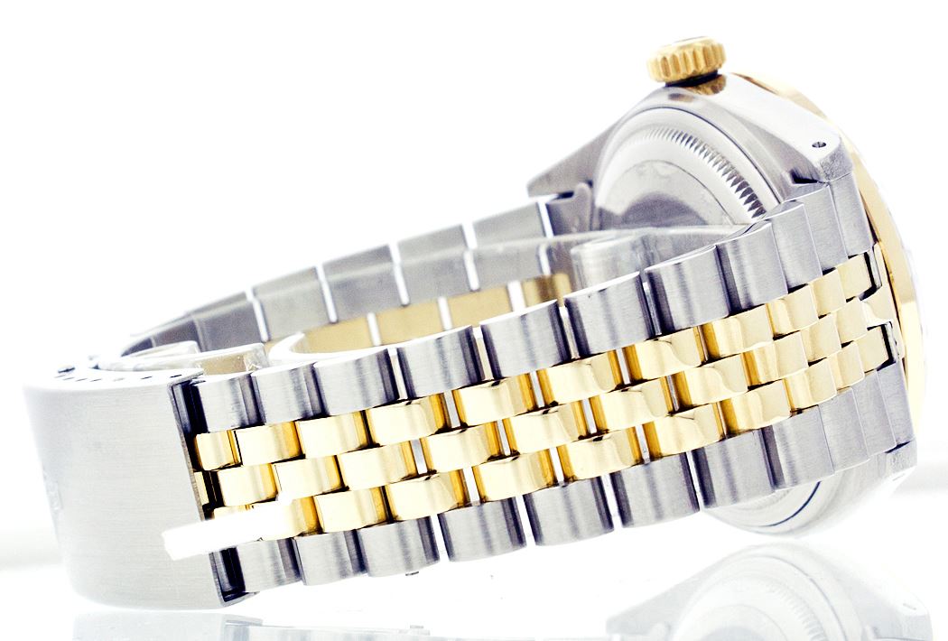WATCH DETAILS: ITEM: WatchBRAND: RolexTYPE: Two ToneFEATURE: MODEL: DateJustMADE: Swiss MadeGENDER: LadiesCONDITION: Pre-OwnedFUNCTION: DateDIAL COLOR: BlueHOUR MARKERS: 10 Round Custom Made DiamondBEZEL TYPE: Custom Made Diamond & Sapphire BezelBEZEL STONE: Diamond G-VVS1 & Ceylon Blue SapphireBEZEL MATERIAL: 18K GoldBRACELET TYPE: Jubilee BRACELET MATERIAL: 14K Yellow Gold & Stainless SteelCLASP TYPE: Folding ClaspCLASP MATERIAL: Stainless SteelCASE STONE: CASE SIZE: 26mmCRYSTAL: Scratch Resistance Sapphire CrystalMOVEMENT: Automatic (Self Winding)CALIBER: 2030CROWN TYPE: Screw Down CrownWATER RESISTANCE: Waterproof to 10 ATM/100 meters/330 feetMODEL #: 6917SKU #: ALTJNS113We Buy/Sell/Trade Valuable watches, Please call us