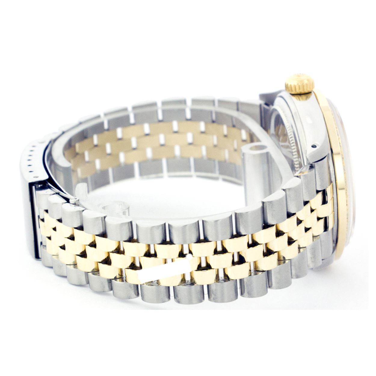 WATCH DETAILS: ITEM: WatchBRAND: RolexTYPE: Two ToneFEATURE: MODEL: DateJustMADE: Swiss MadeGENDER: LadiesCONDITION: Pre-OwnedFUNCTION: DateDIAL COLOR: GoldHOUR MARKERS: Full Custom Made Diamond PaveBEZEL TYPE: Custom Made Diamond & Ruby BezelBEZEL STONE: Diamond G-VVS1 & 4 Burmise RubyBEZEL MATERIAL: 18K GoldBRACELET TYPE: Jubilee BRACELET MATERIAL: 14K Yellow Gold & Stainless SteelCLASP TYPE: Folding ClaspCLASP MATERIAL: Stainless SteelCASE STONE: CASE SIZE: 26mmCRYSTAL: Scratch Resistance Sapphire CrystalMOVEMENT: Automatic (Self Winding)CALIBER: 2030CROWN TYPE: Screw Down CrownWATER RESISTANCE: Waterproof to 10 ATM/100 meters/330 feetMODEL #: 6917SKU #: ALTJNS109We Buy/Sell/Trade Valuable watches, Please call us