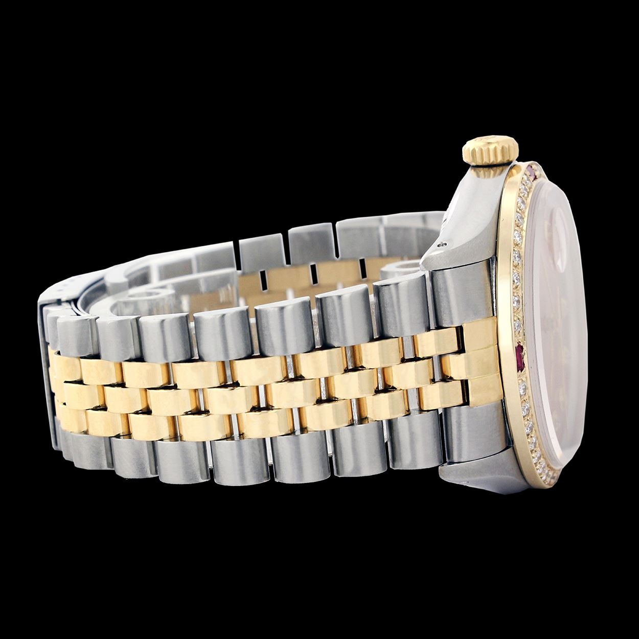 Rolex Ladies Two Tone 14K Gold/ss, Diam Pave Dial & Diam/Ruby Bezel, Sapphire CrystalThis watch is in Excellent Condition.