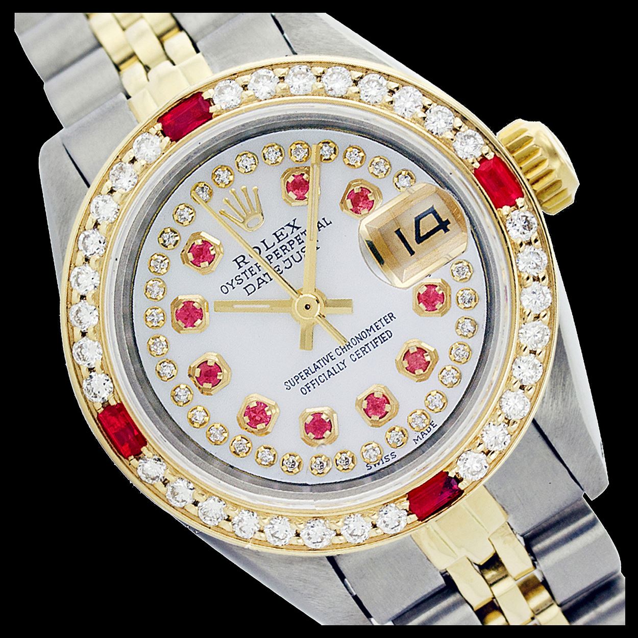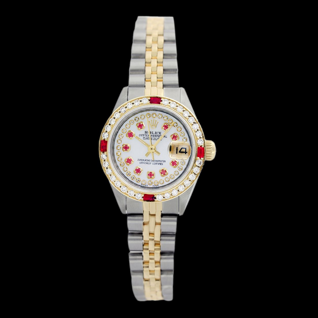 Rolex Ladies Two Tone 14K Gold/ss, Diam/Ruby Dial & Diam/Ruby Bezel, Sapphire CrystalThis watch is in Excellent Condition.