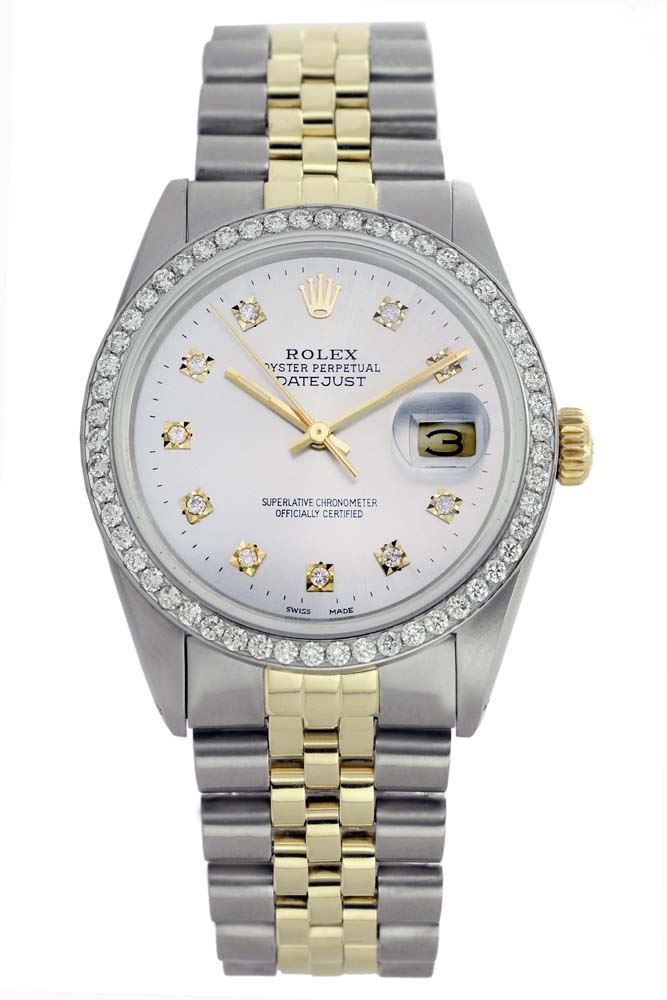 WATCH DETAILS: ITEM: WatchBRAND: RolexTYPE: Two ToneFEATURE: MODEL: DateJustMADE: Swiss MadeGENDER: LadiesCONDITION: Pre-OwnedFUNCTION: DateDIAL COLOR: whiteHOUR MARKERS: 10 Round Custom Made DiamondBEZEL TYPE: Custom Made Diamond BezelBEZEL STONE: Diamond .80 CTW G-VVS1 BEZEL MATERIAL: 18K GoldBRACELET TYPE: Jubilee BRACELET MATERIAL: 14K Yellow Gold & Stainless SteelCLASP TYPE: Folding ClaspCLASP MATERIAL: Stainless SteelCASE STONE: CASE SIZE: 26mmCRYSTAL: Scratch Resistance Sapphire CrystalMOVEMENT: Automatic (Self Winding)CALIBER: 2030CROWN TYPE: Screw Down CrownWATER RESISTANCE: Waterproof to 10 ATM/100 meters/330 feetMODEL #: 6917SKU #: ALTJNS8We Buy/Sell/Trade Valuable watches, Please call us