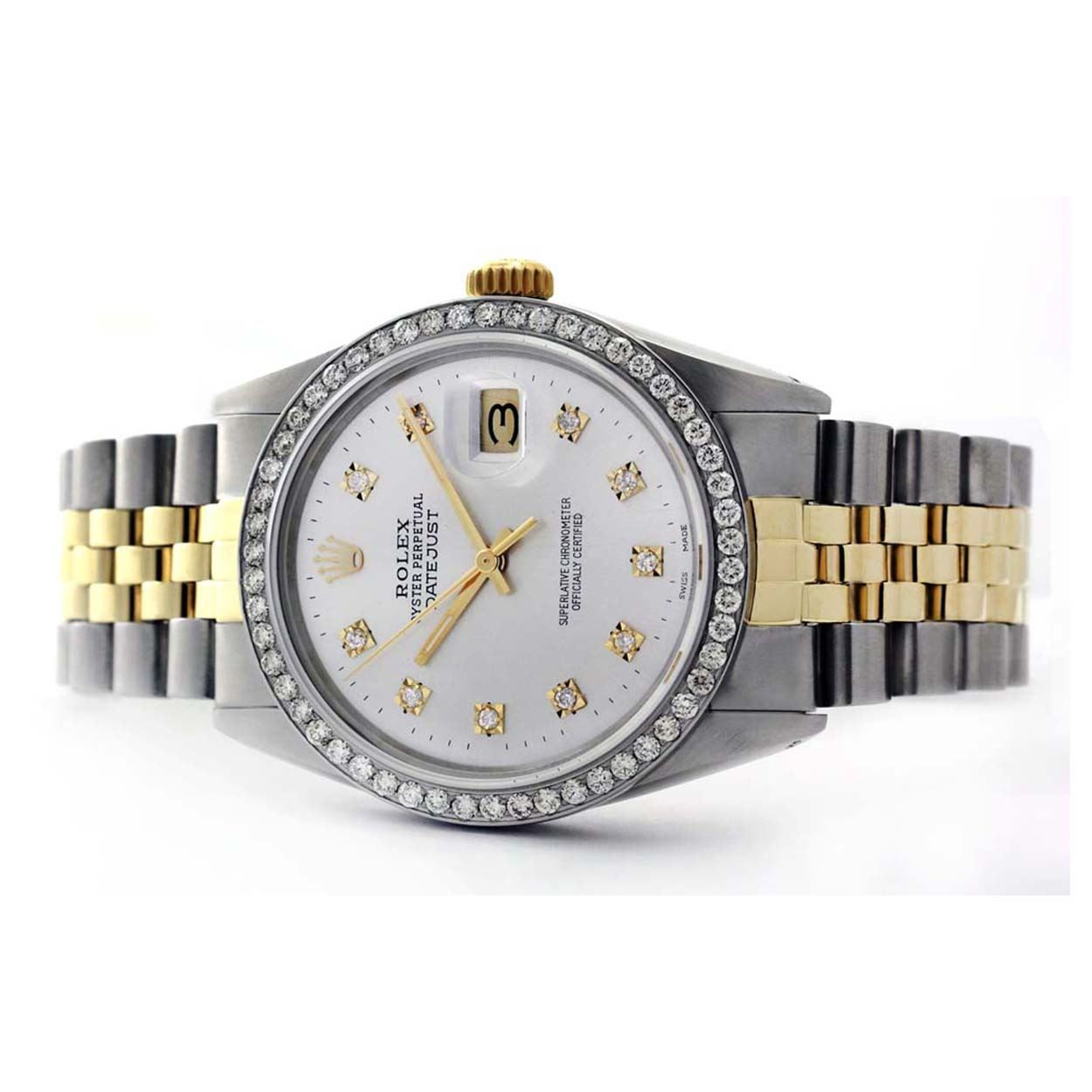 WATCH DETAILS: ITEM: WatchBRAND: RolexTYPE: Two ToneFEATURE: MODEL: DateJustMADE: Swiss MadeGENDER: LadiesCONDITION: Pre-OwnedFUNCTION: DateDIAL COLOR: whiteHOUR MARKERS: 10 Round Custom Made DiamondBEZEL TYPE: Custom Made Diamond BezelBEZEL STONE: Diamond .80 CTW G-VVS1 BEZEL MATERIAL: 18K GoldBRACELET TYPE: Jubilee BRACELET MATERIAL: 14K Yellow Gold & Stainless SteelCLASP TYPE: Folding ClaspCLASP MATERIAL: Stainless SteelCASE STONE: CASE SIZE: 26mmCRYSTAL: Scratch Resistance Sapphire CrystalMOVEMENT: Automatic (Self Winding)CALIBER: 2030CROWN TYPE: Screw Down CrownWATER RESISTANCE: Waterproof to 10 ATM/100 meters/330 feetMODEL #: 6917SKU #: ALTJNS8We Buy/Sell/Trade Valuable watches, Please call us