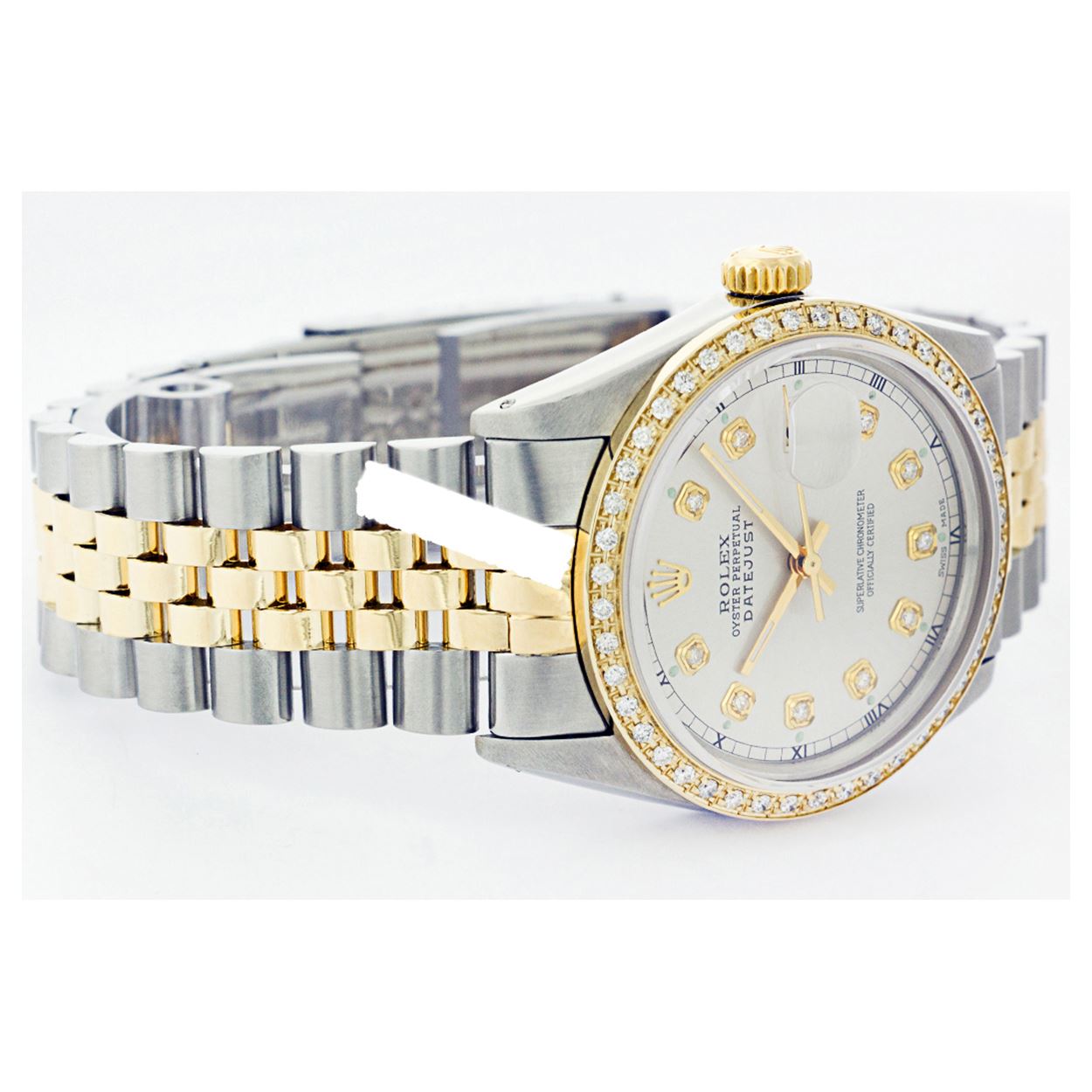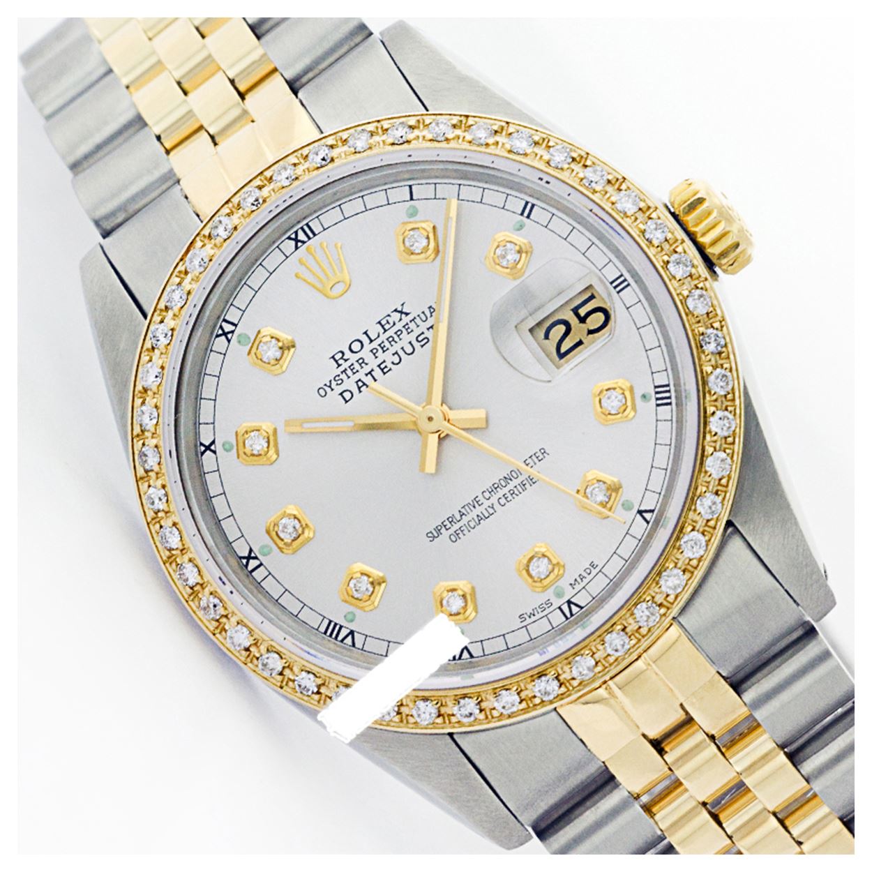 WATCH DETAILS: ITEM: WatchBRAND: RolexTYPE: Two ToneFEATURE: MODEL: DateJustMADE: Swiss MadeGENDER: LadiesCONDITION: Pre-OwnedFUNCTION: DateDIAL COLOR: SilverHOUR MARKERS: 10 Round Custom Made DiamondBEZEL TYPE: Custom Made Diamond BezelBEZEL STONE: Diamond .80 CTW G-VVS1 BEZEL MATERIAL: 18K GoldBRACELET TYPE: Jubilee BRACELET MATERIAL: 14K Yellow Gold & Stainless SteelCLASP TYPE: Folding ClaspCLASP MATERIAL: Stainless SteelCASE STONE: CASE SIZE: 26mmCRYSTAL: Scratch Resistance Sapphire CrystalMOVEMENT: Automatic (Self Winding)CALIBER: 2030CROWN TYPE: Screw Down CrownWATER RESISTANCE: Waterproof to 10 ATM/100 meters/330 feetMODEL #: 6917SKU #: ALTJNS117We Buy/Sell/Trade Valuable watches, Please call us