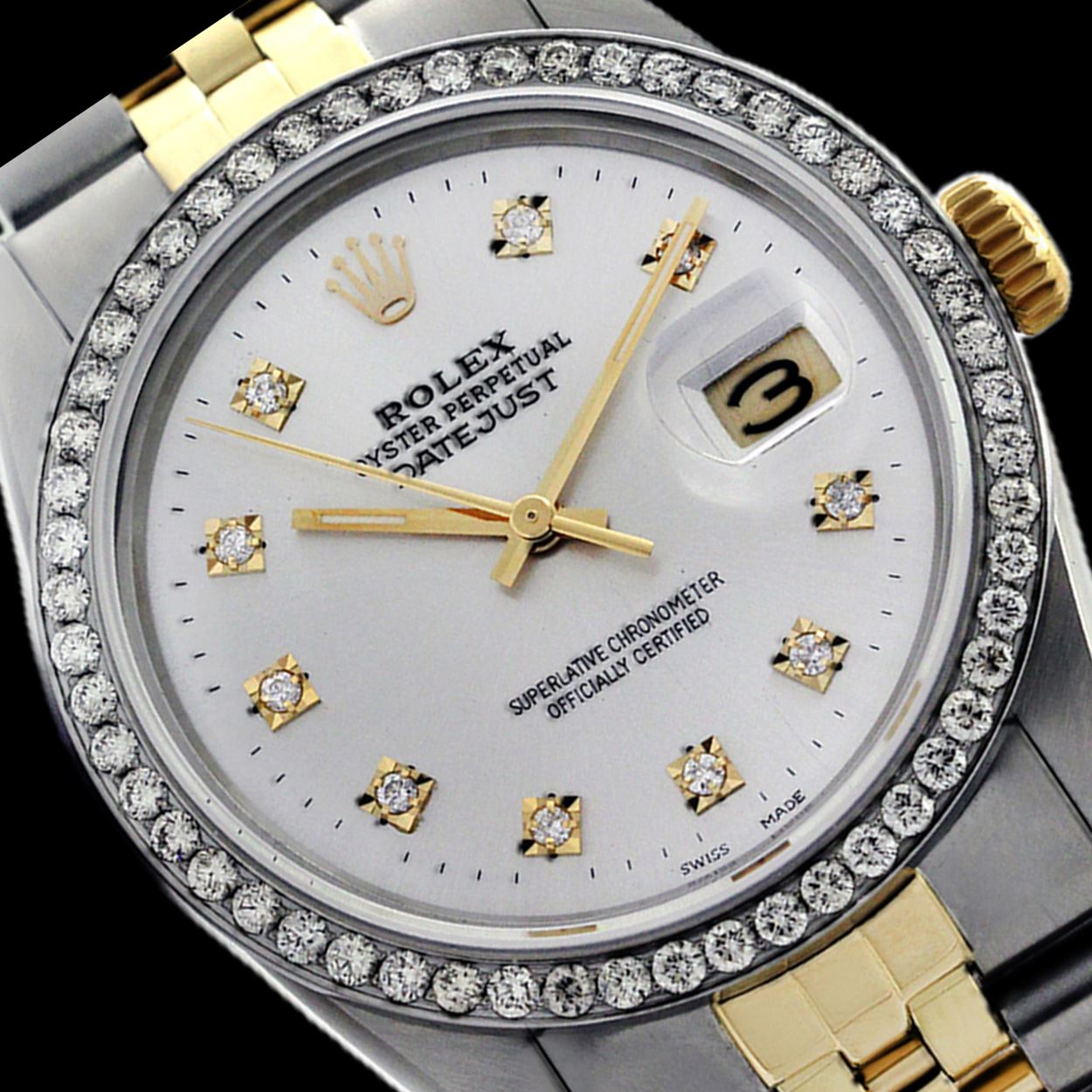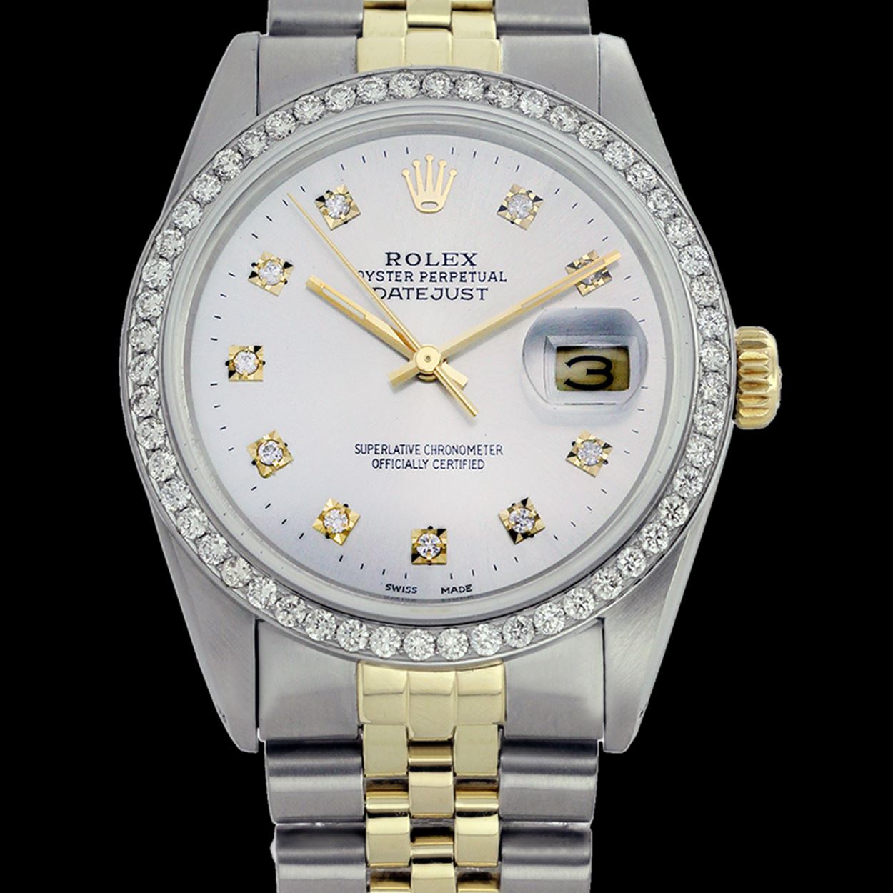WATCH DETAILS: ITEM: WatchBRAND: RolexTYPE: Two ToneFEATURE: MODEL: DateJustMADE: Swiss MadeGENDER: LadiesCONDITION: Pre-OwnedFUNCTION: DateDIAL COLOR: whiteHOUR MARKERS: 10 Round Custom Made DiamondBEZEL TYPE: Custom Made Diamond BezelBEZEL STONE: Diamond .80 CTW G-VVS1 BEZEL MATERIAL: 18K GoldBRACELET TYPE: Jubilee BRACELET MATERIAL: 14K Yellow Gold & Stainless SteelCLASP TYPE: Folding ClaspCLASP MATERIAL: Stainless SteelCASE STONE: CASE SIZE: 26mmCRYSTAL: Scratch Resistance Sapphire CrystalMOVEMENT: Automatic (Self Winding)CALIBER: 2030CROWN TYPE: Screw Down CrownWATER RESISTANCE: Waterproof to 10 ATM/100 meters/330 feetMODEL #: 6917SKU #: ALTJNS8We Buy/Sell/Trade Valuable watches, Please call us