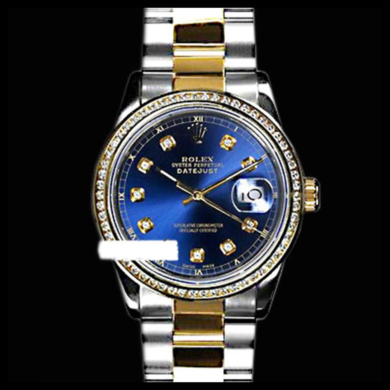 WATCH DETAILS: ITEM: WatchBRAND: RolexTYPE: Two ToneFEATURE: MODEL: DateJustMADE: Swiss MadeGENDER: LadiesCONDITION: Pre-OwnedFUNCTION: DateDIAL COLOR: BlueHOUR MARKERS: 10 Round Custom Made DiamondBEZEL TYPE: Custom Made Diamond BezelBEZEL STONE: Diamond .80 CTW G-VVS1 BEZEL MATERIAL: 18K GoldBRACELET TYPE: Jubilee BRACELET MATERIAL: 14K Yellow Gold & Stainless SteelCLASP TYPE: Folding ClaspCLASP MATERIAL: Stainless SteelCASE STONE: CASE SIZE: 26mmCRYSTAL: Scratch Resistance Sapphire CrystalMOVEMENT: Automatic (Self Winding)CALIBER: 2030CROWN TYPE: Screw Down CrownWATER RESISTANCE: Waterproof to 10 ATM/100 meters/330 feetMODEL #: 6917SKU #: ALTJNS40We Buy/Sell/Trade Valuable watches, Please call us
