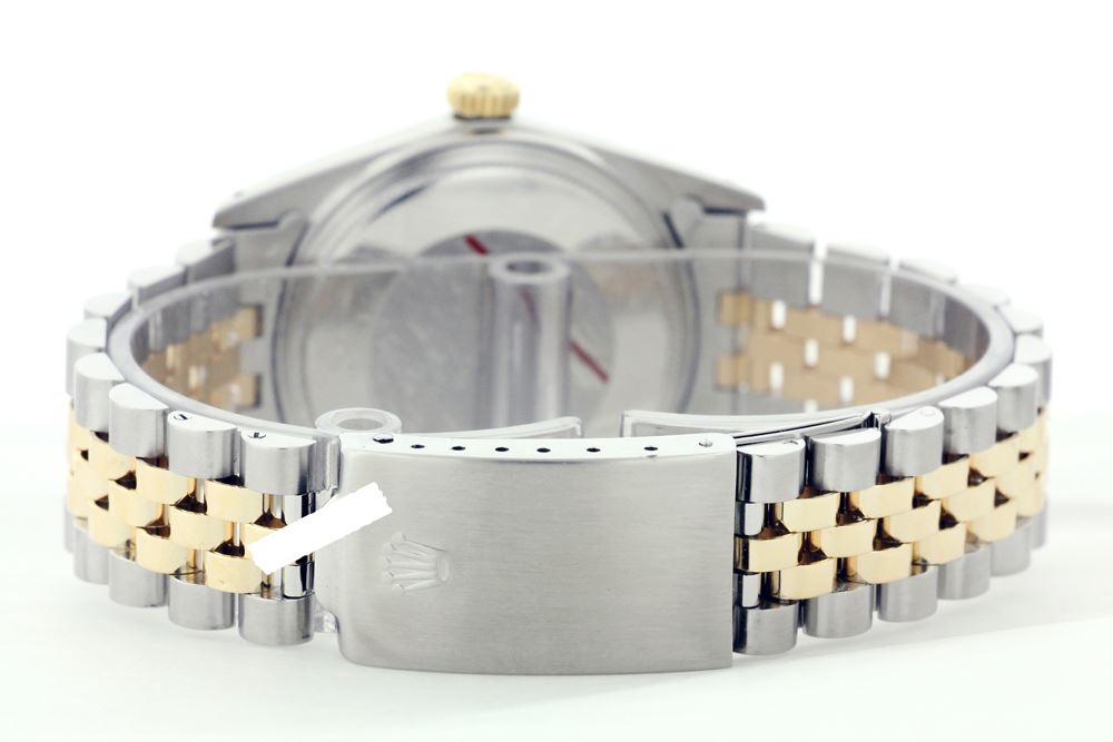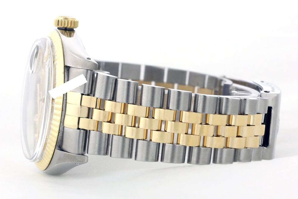 WATCH DETAILS: ITEM: WatchBRAND: RolexTYPE: Two ToneFEATURE: MODEL: DateJustMADE: Swiss MadeGENDER: LadiesCONDITION: Pre-OwnedFUNCTION: DateDIAL COLOR: ChampagneHOUR MARKERS: 8 + 2 , 8 Round and 2 Baguette Custom Made DiamondBEZEL TYPE: Fluted BezelBEZEL STONE: No StoneBEZEL MATERIAL: 18K GoldBRACELET TYPE: Jubilee BRACELET MATERIAL: 14K Yellow Gold & Stainless SteelCLASP TYPE: Folding ClaspCLASP MATERIAL: Stainless SteelCASE STONE: CASE SIZE: 26mmCRYSTAL: Acrylic MOVEMENT: Automatic (Self Winding)CALIBER: 2030CROWN TYPE: Screw Down CrownWATER RESISTANCE: Waterproof to 10 ATM/100 meters/330 feetMODEL #: 6917SKU #: ALTJNP14We Buy/Sell/Trade Valuable watches, Please call us