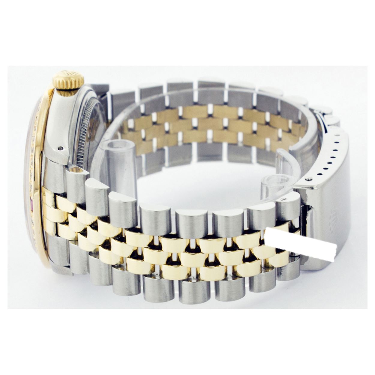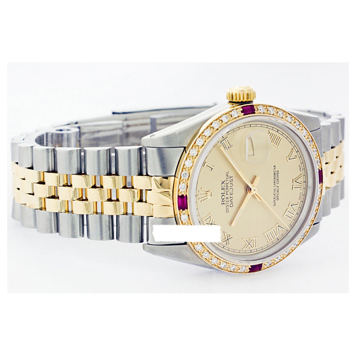 REF-428T6K ---- Rolex Ladies Two Tone 14K Gold/ss, Roman Dial & Diam/Ruby Bezel, Sapphire CrystalThis watch is in Excellent Condition.
