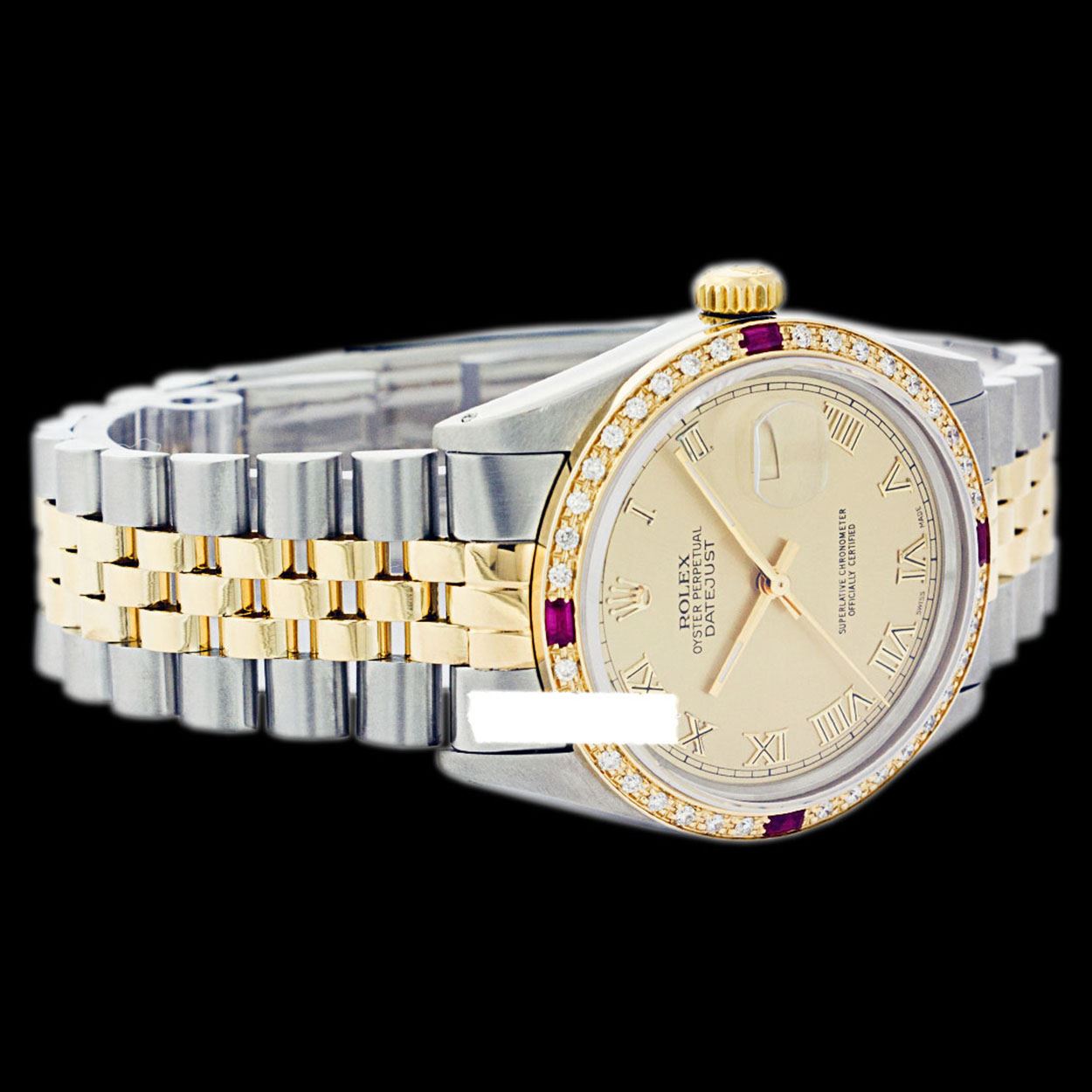 Rolex Ladies Two Tone 14K Gold/ss, Roman Dial & Diam/Ruby Bezel, Sapphire CrystalThis watch is in Excellent Condition.