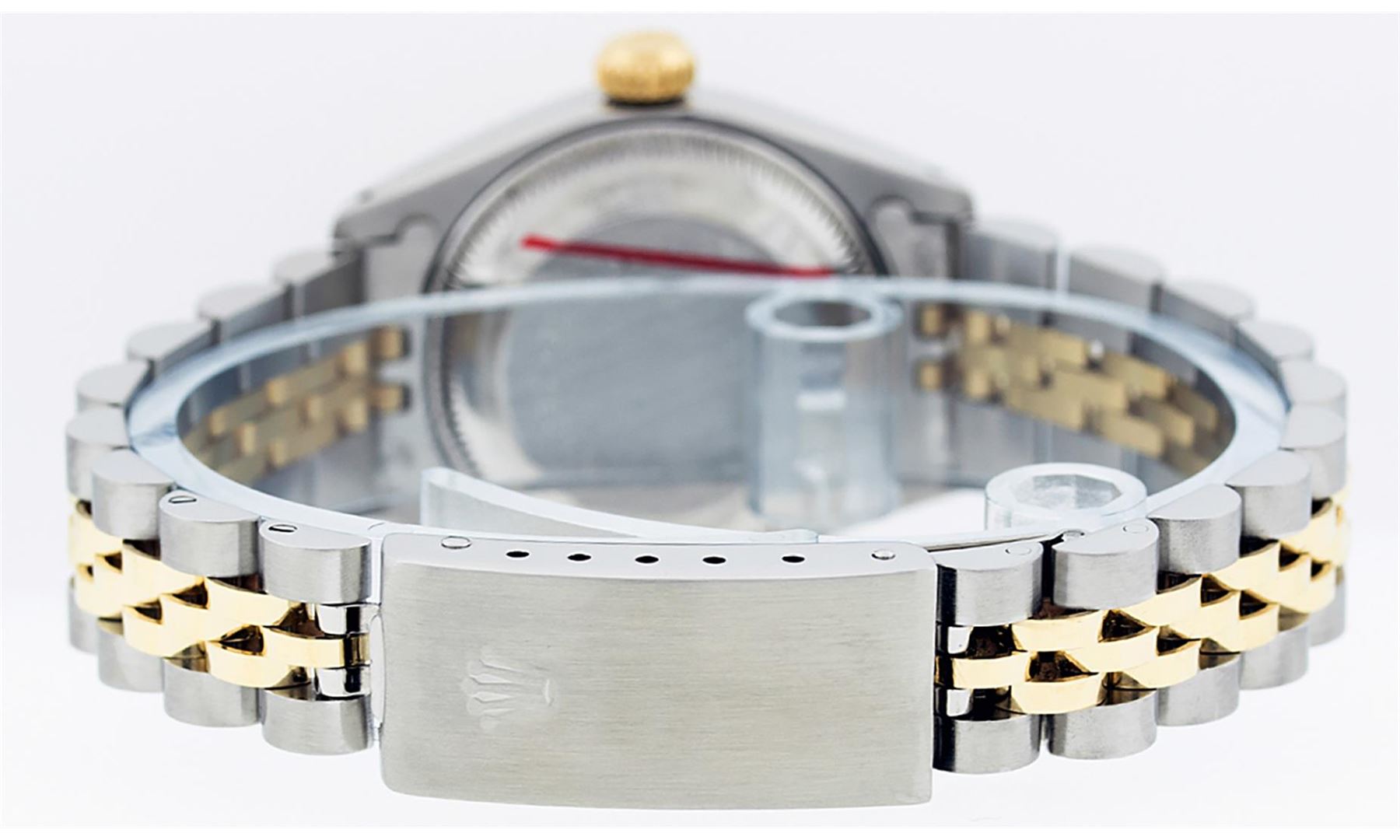 One Ladies Two Tone Rolex Datejust Polished, Serviced & Electronically Tested, Yellow Gold & Stainless Steel Case: 26mm, Yellow Gold Crown, Bezel: Yellow Gold Fluted Bezel. Custom Crystal: New Acrylic Cyclops Lens. Custom Hands: Luminescent Hands. Movemen