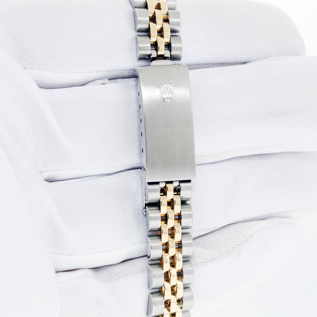 Rolex Ladies Pre Owned Quickset 18K Yellow Gold and Stainless Steel Two Tone Wristwatch Polished Bright with Satin Finish, Serviced & Electronically Tested, Rolex Stainless Steel Case: 26mm, Custom Diamond Lugs: Added Diamonds On Lugs, Diamond Count: 24 Diamonds On Lugs, Color: G To H, Clarity: SI-VS. Rolex Yellow Gold Crown, Custom Bezel: New 18K Yellow Gold Beadset And Ruby Diamond Bezel, Stone Count: 28 Diamonds + 4 Rubies On Bezel. Custom Crystal: New Sapphire With Magnified Date Window. Custom Hands: New Hands. Rolex Movement: Automatic Winding Movement. Rolex Dial: Champagne Dial With Dash Track & Lumi Dots, Date Window: 3 O'Clock Position Date Display, Model: Quickset Datejust, Condition: G-6 Extra Fine. Rolex Bracelet: Stainless Steel and 18K Yellow Gold Jubilee Band. Bright Polish & Satin Finish. 6.0 Inch Length, Adjustable. Standard Clasp, With Rolex Logo. This Watch Has Been Serviced Time Tested And Is In Excellent Condition It Is Free Of All Scratches And Dents.
