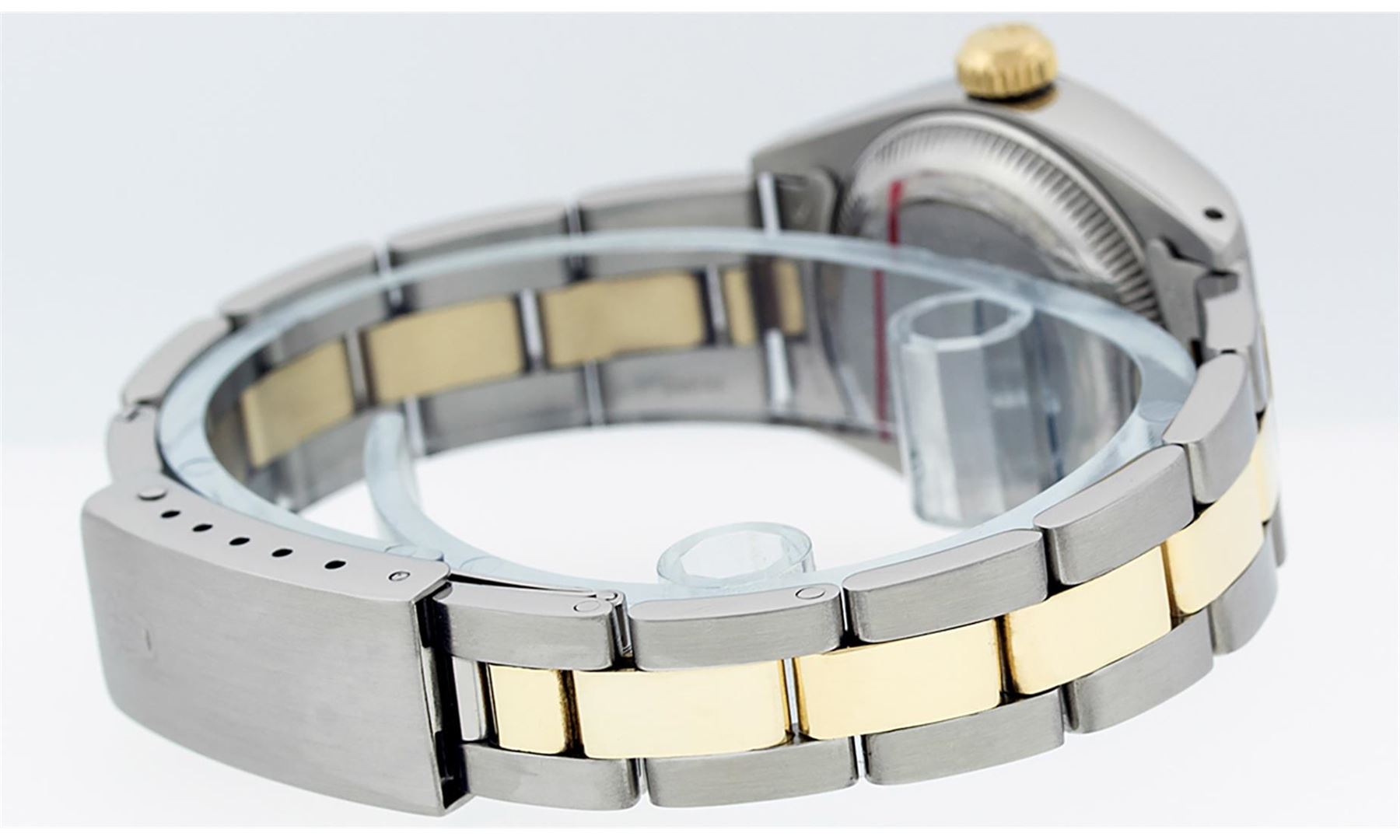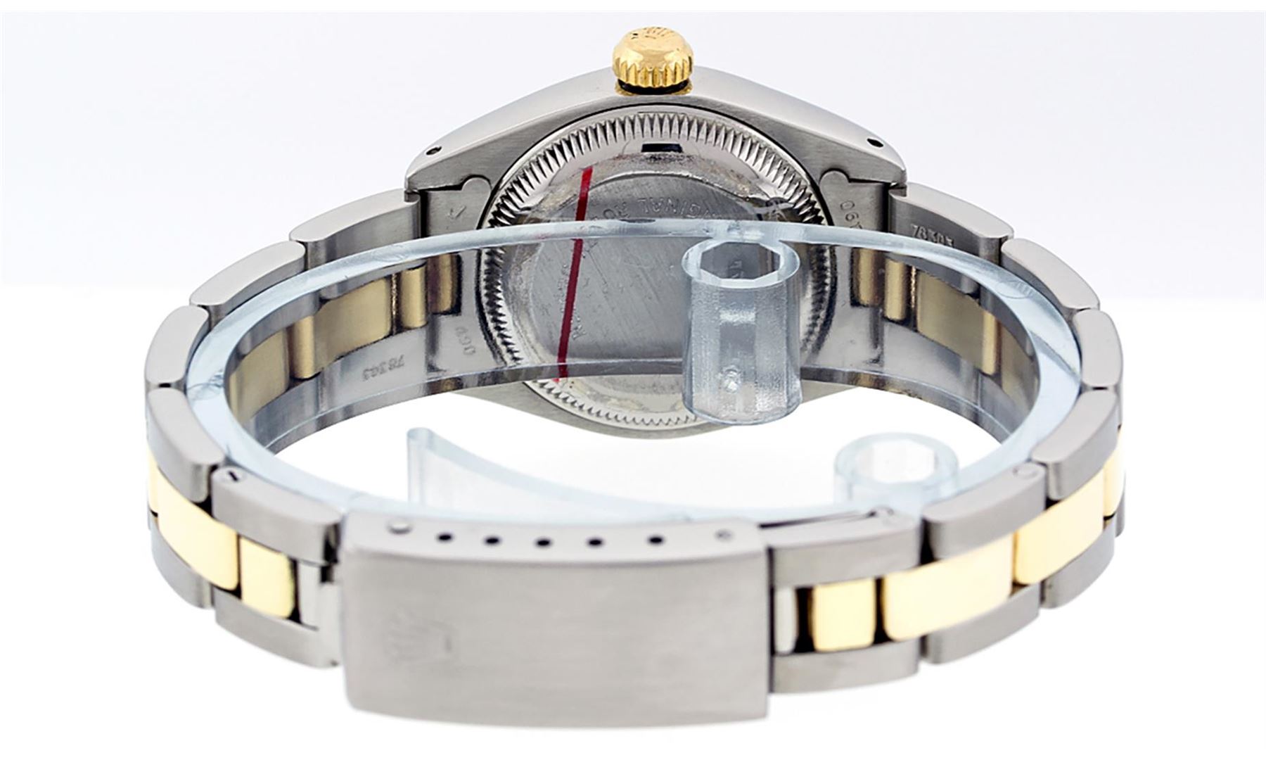 One Ladies Yellow Gold & Stainless Steel Two Tone Rolex Datejust Polished, Serviced & Electronically Tested, Yellow Gold & Stainless Steel Case: 26mm, Yellow Gold Crown, Bezel: Yellow Gold Fluted Bezel. Custom Crystal: New With Cyclops Lens. Hands: Lumine