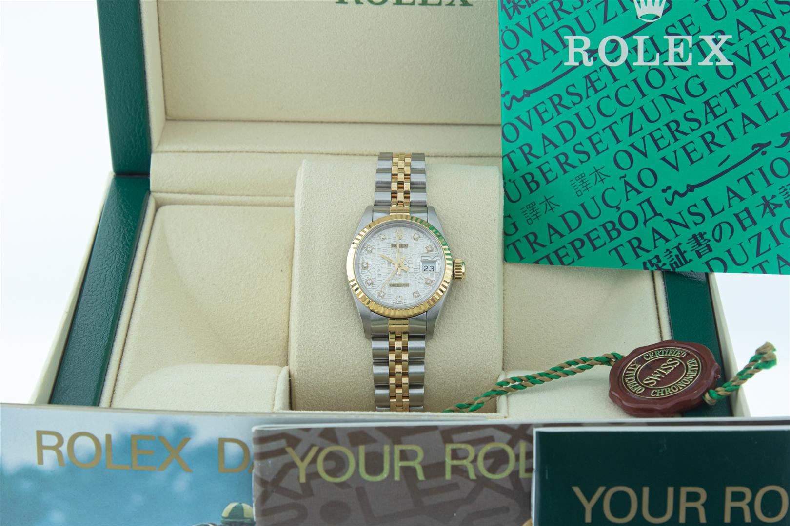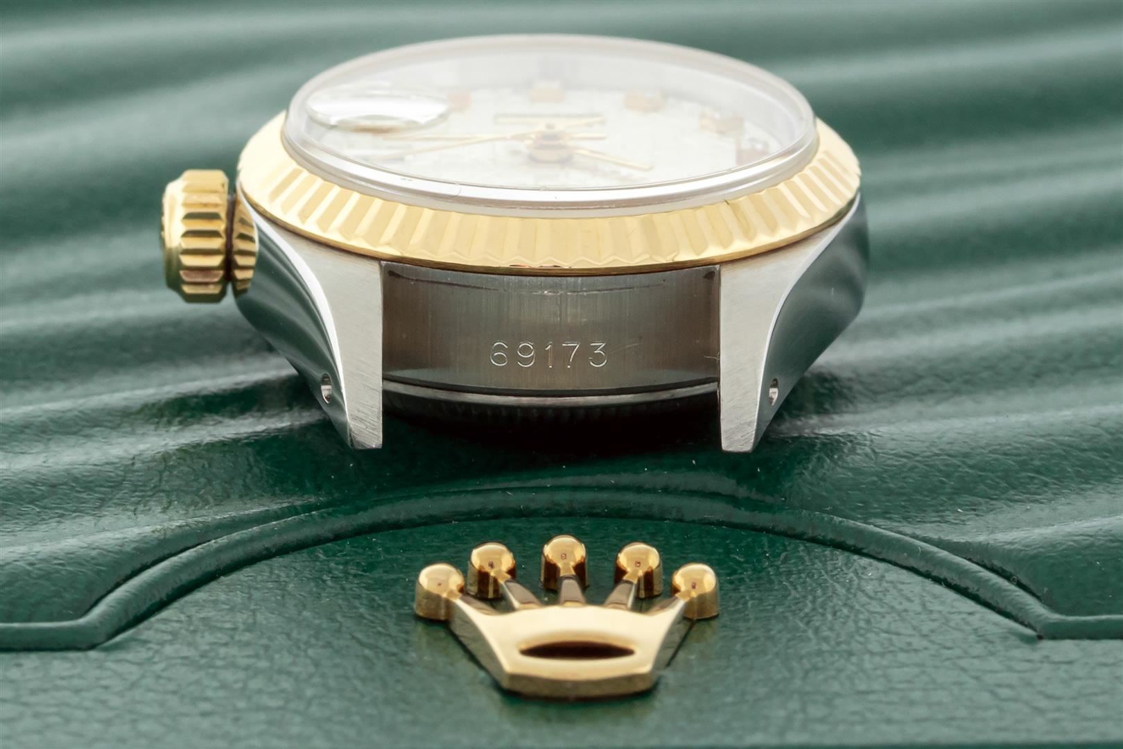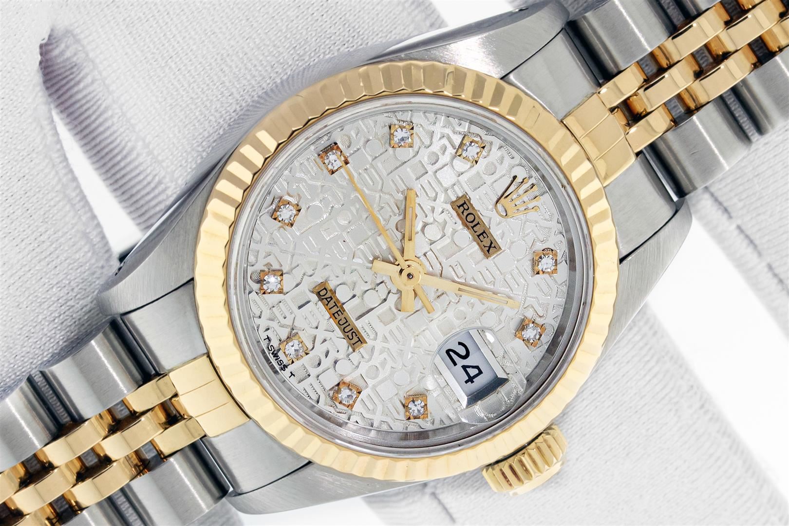 Rolex Ladies Pre Owned Quickset 18K Yellow Gold and Stainless Steel Two Tone Oyster Perpetual Datejust Polished Bright with Satin Finish, Serviced & Electronically Tested, Rolex Case: 26mm, Rolex 18K Yellow Gold Crown, Rolex Bezel: Original Rolex 18K Yell