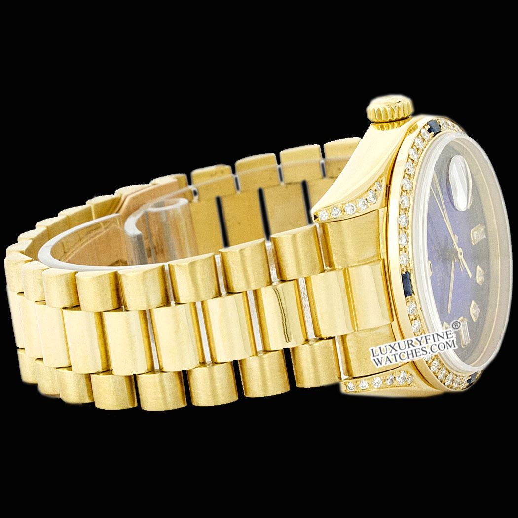 Pre-owned Rolex Men's 18K Yellow President, QuickSet, Diam Dial & Diam/Sapphire BezelThis watch is in Excellent Condition.