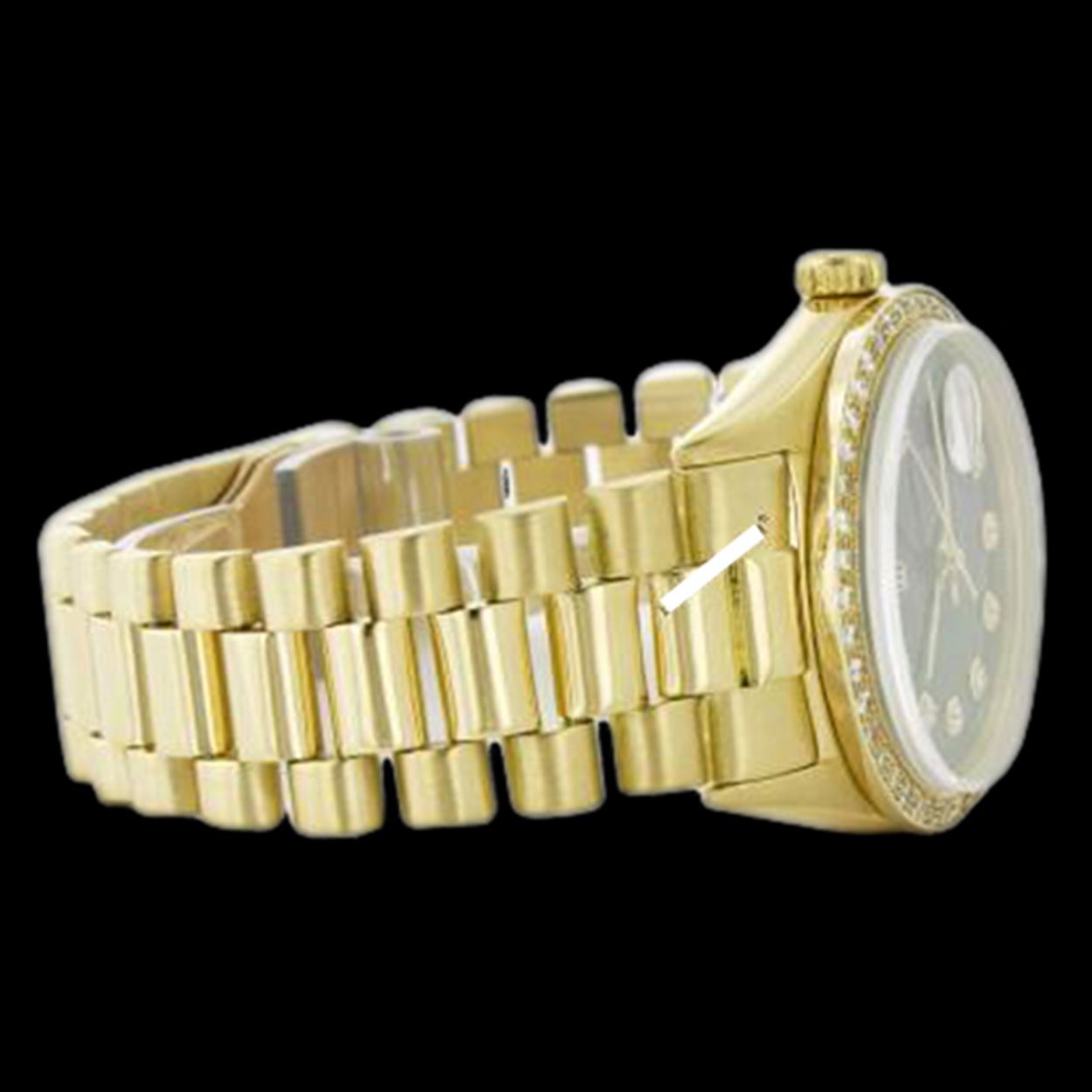 Rolex Men's 18K Yellow President, QuickSet, Diamond Dial & Diamond BezelThis watch is pre-owned and in Excellent Condition.