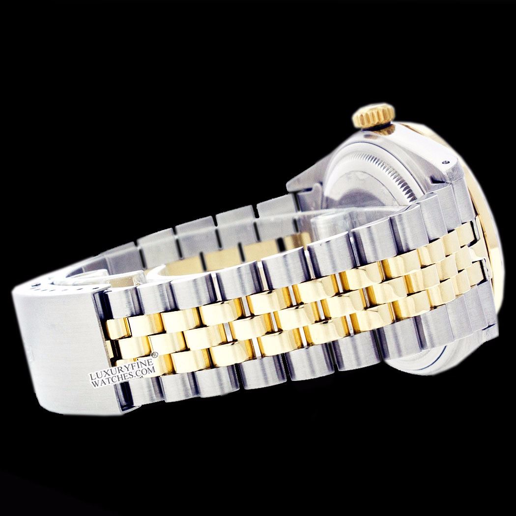 WATCH DETAILS: ITEM: WatchBRAND: RolexTYPE: Two ToneFEATURE: QuickSetMODEL: DateJustMADE: Swiss MadeGENDER: Men'sCONDITION: Pre-OwnedFUNCTION: DateDIAL COLOR: BlueHOUR MARKERS: 10 Round DiamondBEZEL TYPE: Diamond & Sapphire BezelBEZEL STONE: Diamond G-VVS1 & Ceylon Blue SapphireBEZEL MATERIAL: 18K GoldBRACELET TYPE: Jubilee BRACELET MATERIAL: 14K Yellow Gold & Stainless SteelCLASP TYPE: Folding ClaspCLASP MATERIAL: Stainless SteelCASE STONE: CASE SIZE: 36mmCRYSTAL: Scratch Resistance Sapphire CrystalMOVEMENT: Automatic (Self Winding)CALIBER: 3035CROWN TYPE: Screw Down CrownWATER RESISTANCE: Waterproof to 10 ATM/100 meters/330 feetMODEL #: 16013SKU #: AMTJQS113We Buy/Sell/Trade Valuable watches, Please call usNote: Presentational generic box included. This watch was professionally inspected and serviced prior to auction. We are not affiliated with Rolex USA, Inc.