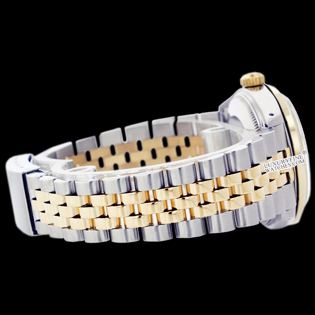 WATCH DETAILS: ITEM: WatchBRAND: RolexTYPE: Two ToneFEATURE: QuickSetMODEL: DateJustMADE: Swiss MadeGENDER: Men'sCONDITION: Pre-OwnedFUNCTION: DateDIAL COLOR: BlueHOUR MARKERS: 10 Round DiamondBEZEL TYPE: Diamond BezelBEZEL STONE: Diamond 1.14 CTW G-VVS1 BEZEL MATERIAL: 18K GoldBRACELET TYPE: Jubilee BRACELET MATERIAL: 14K Yellow Gold & Stainless SteelCLASP TYPE: Folding ClaspCLASP MATERIAL: Stainless SteelCASE STONE: CASE SIZE: 36mmCRYSTAL: Scratch Resistance Sapphire CrystalMOVEMENT: Automatic (Self Winding)CALIBER: 3035CROWN TYPE: Screw Down CrownWATER RESISTANCE: Waterproof to 10 ATM/100 meters/330 feetMODEL #: 16013SKU #: AMTJQS140We Buy/Sell/Trade Valuable watches, Please call usNote: Presentational generic box included. This watch was professionally inspected and serviced prior to auction. We are not affiliated with Rolex USA, Inc.