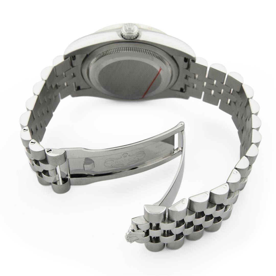 Rolex Datejust Mens 36mm Blue and Grey Diamond Dial Steel Polished & Electronically Tested. Model: Datejust 116234. Case: Stainless Steel. Bezel: Custom made diamond bezel with round brilliant diamonds all set in prong setting. Total Weight 0.85ctw Clarity: VS-SI Color:G-H. Bracelet: Stainless Steel, Little Loose. Dial: Original Blue and Grey 0.10ctw Diamonds. Date Window: 3 O'clock Position date display. Movement: Automatic Winding Movement. Water Resistant: Yes. Case Size: 36mm. Condition: Pre Owned, Watch is free of all Scratches and Dents, Extra Fine G-6.