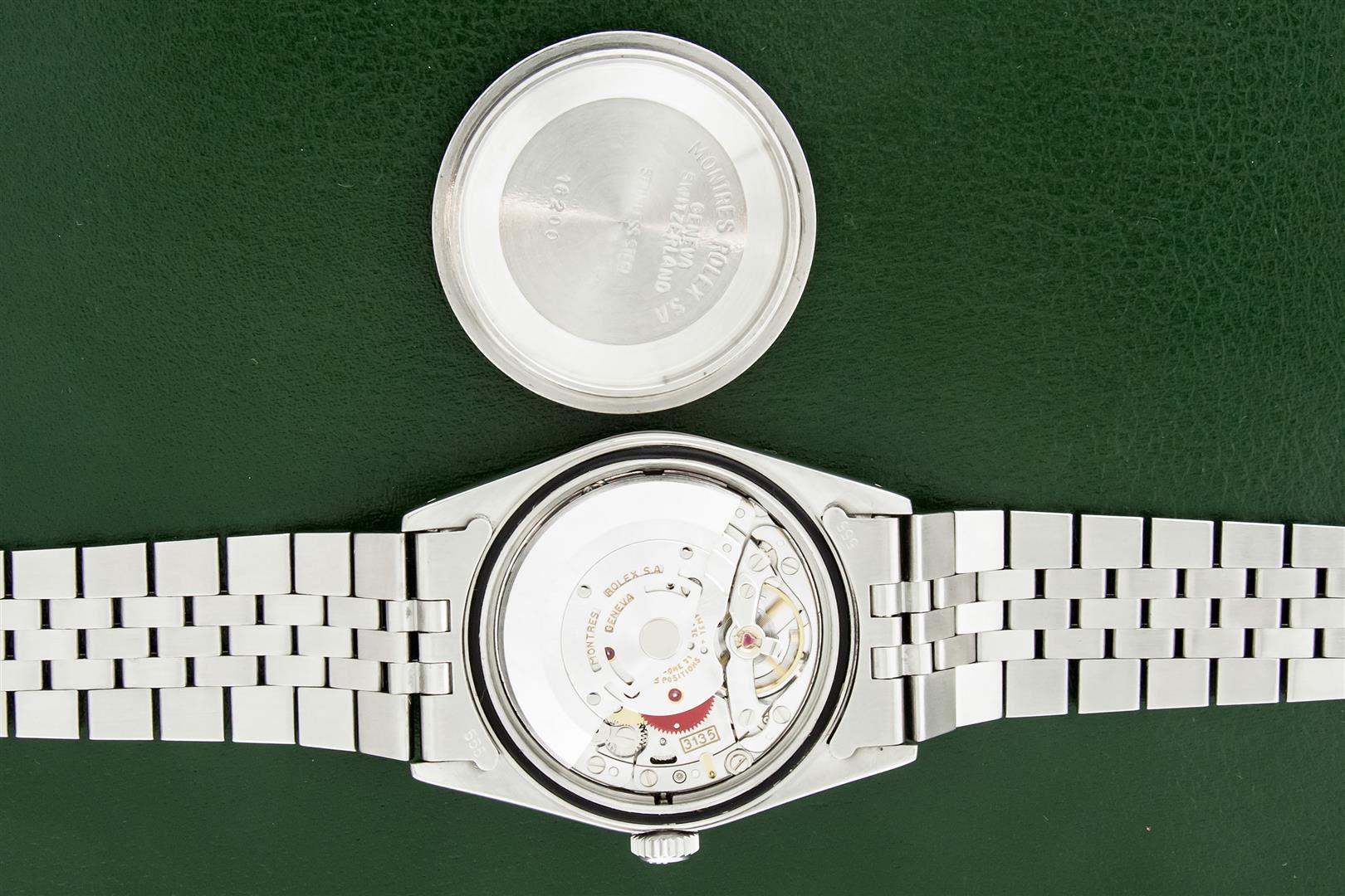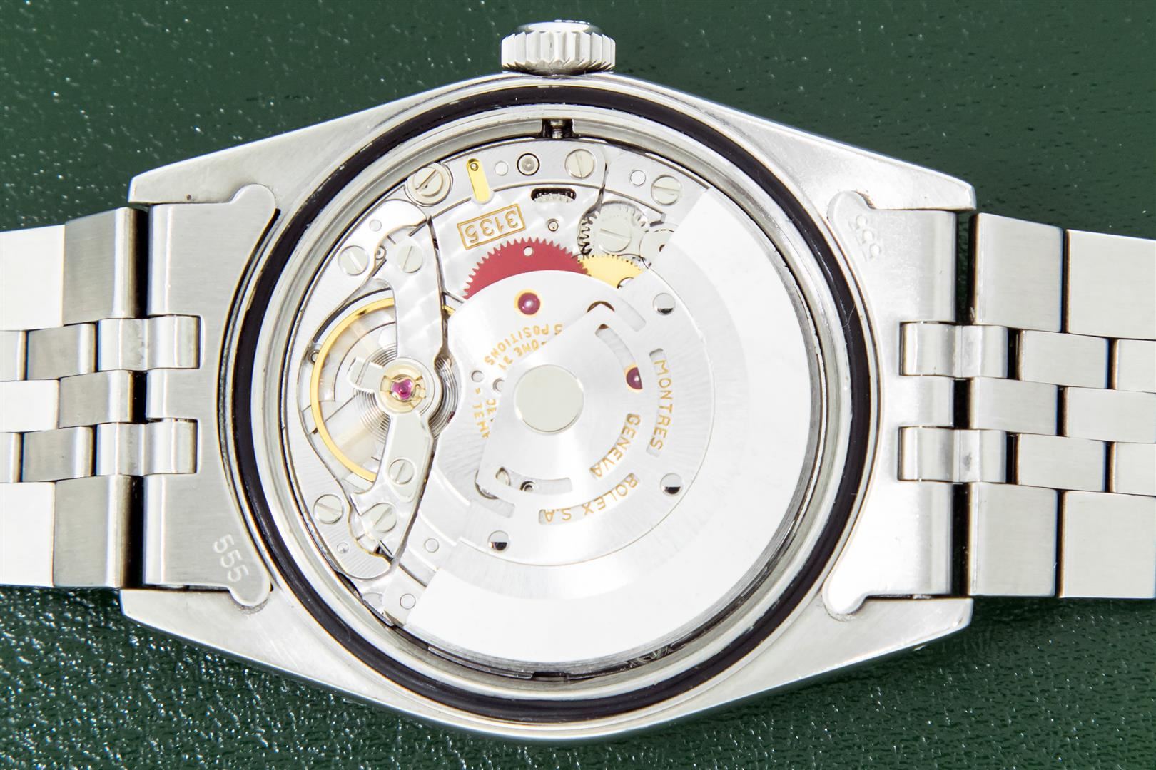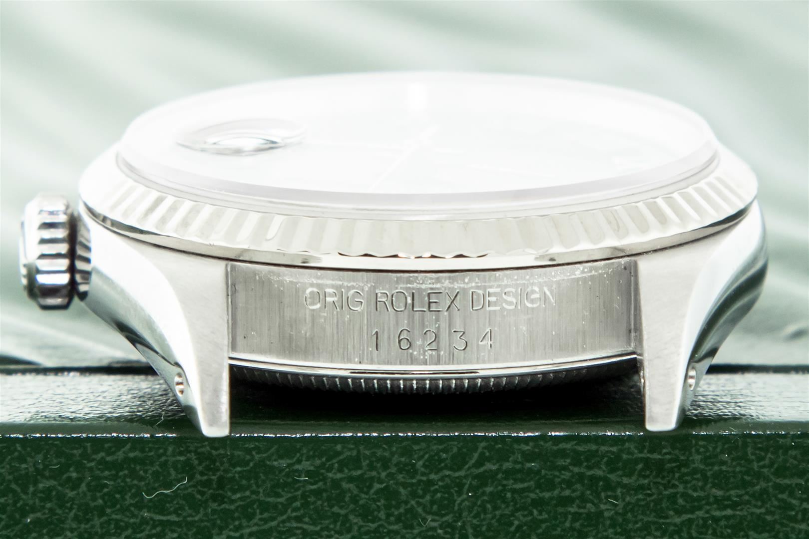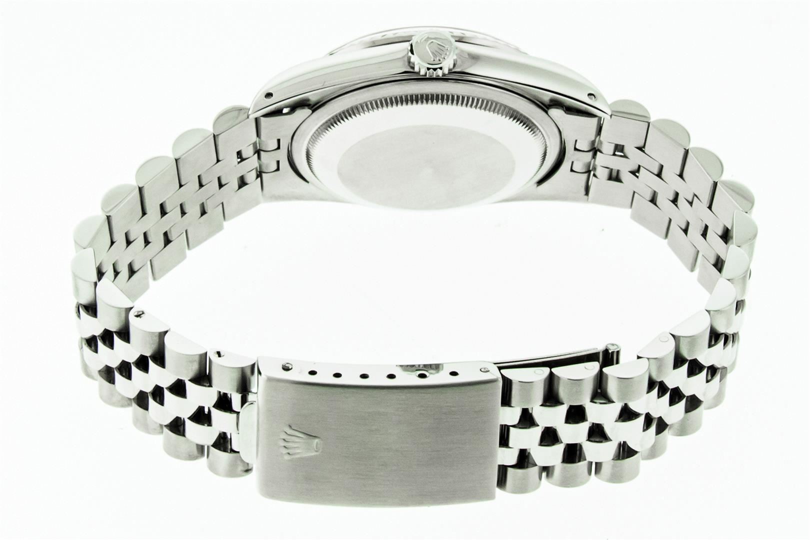 One Men's Stainless Steel Rolex Datejust Polished Bright with Satin Finish, This Watch Has Been Serviced & Electronically Tested, Rolex Stainless Steel Case: 36mm, Rolex Stainless Steel Crown, Rolex Bezel: 18K White Gold Fluted Bezel. Custom Crystal: New Sapphire With Magnified Date Window. Custom Hands: New Luminescent Hands. Rolex Movement: Automatic Winding Movement Caliber 3135. Rolex Dial: Rolex Black Dial With Roman Numerical Hour Markers Date Window: 3 O'clock Position Date Display, Quickset, Model: Sapphire Datejust, Condition: G-6 Extra Fine. Rolex Bracelet: Stainless Steel Jubilee Band. Bright Polish & Satin Finish. 7.0 Inch Length, Adjustable. Standard Clasp, With Rolex Logo. This Pre Owned Watch Has Been Serviced Time Tested And Is In Excellent Condition It Is Free Of All Scratches And Dents. This Watch Comes With Rolex Box.