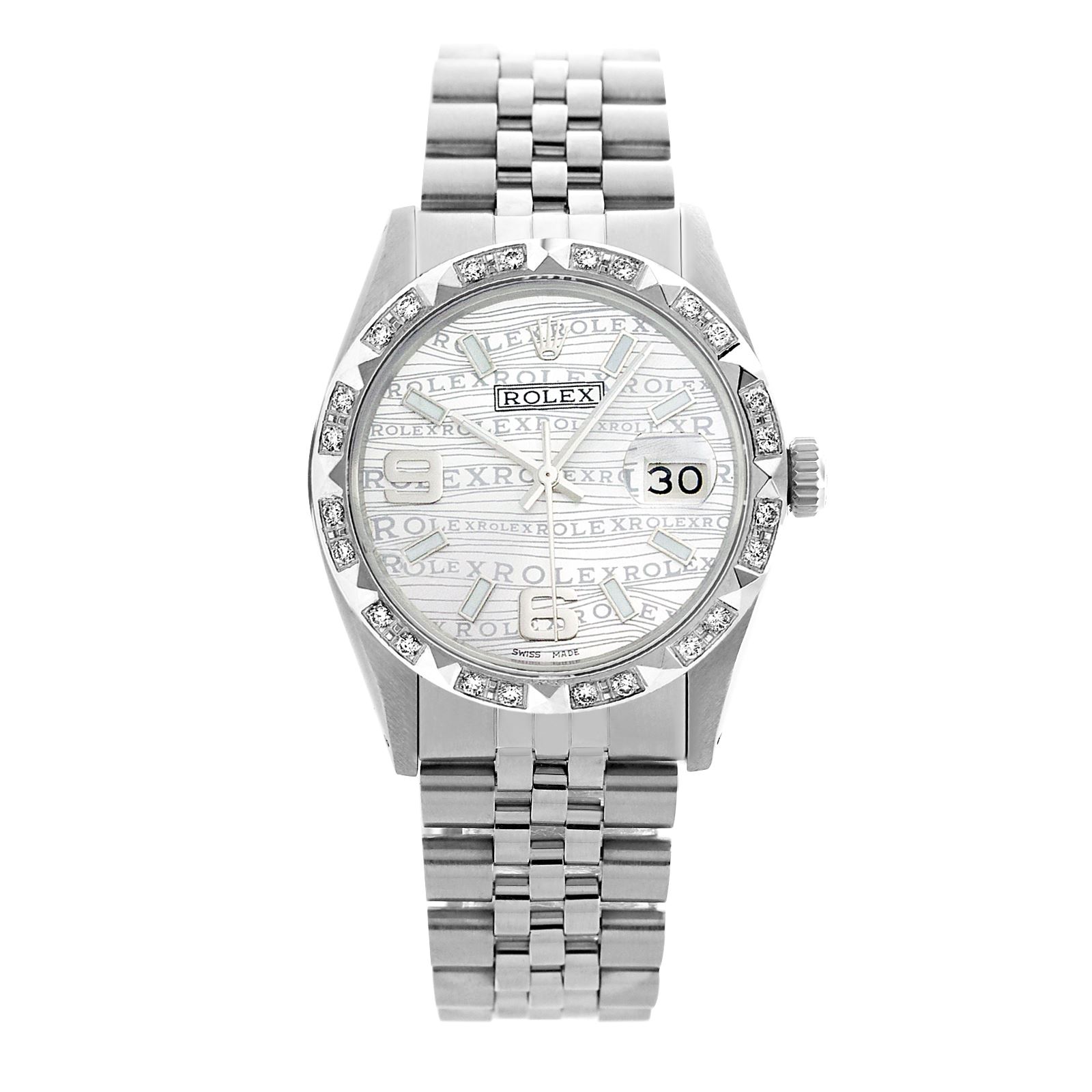 REF-430W9K ---- Rolex Men's Stainless Steel, QuickSet, Arabic Dial with Pyrimid Diam Bezel This watch is in Excellent Condition.