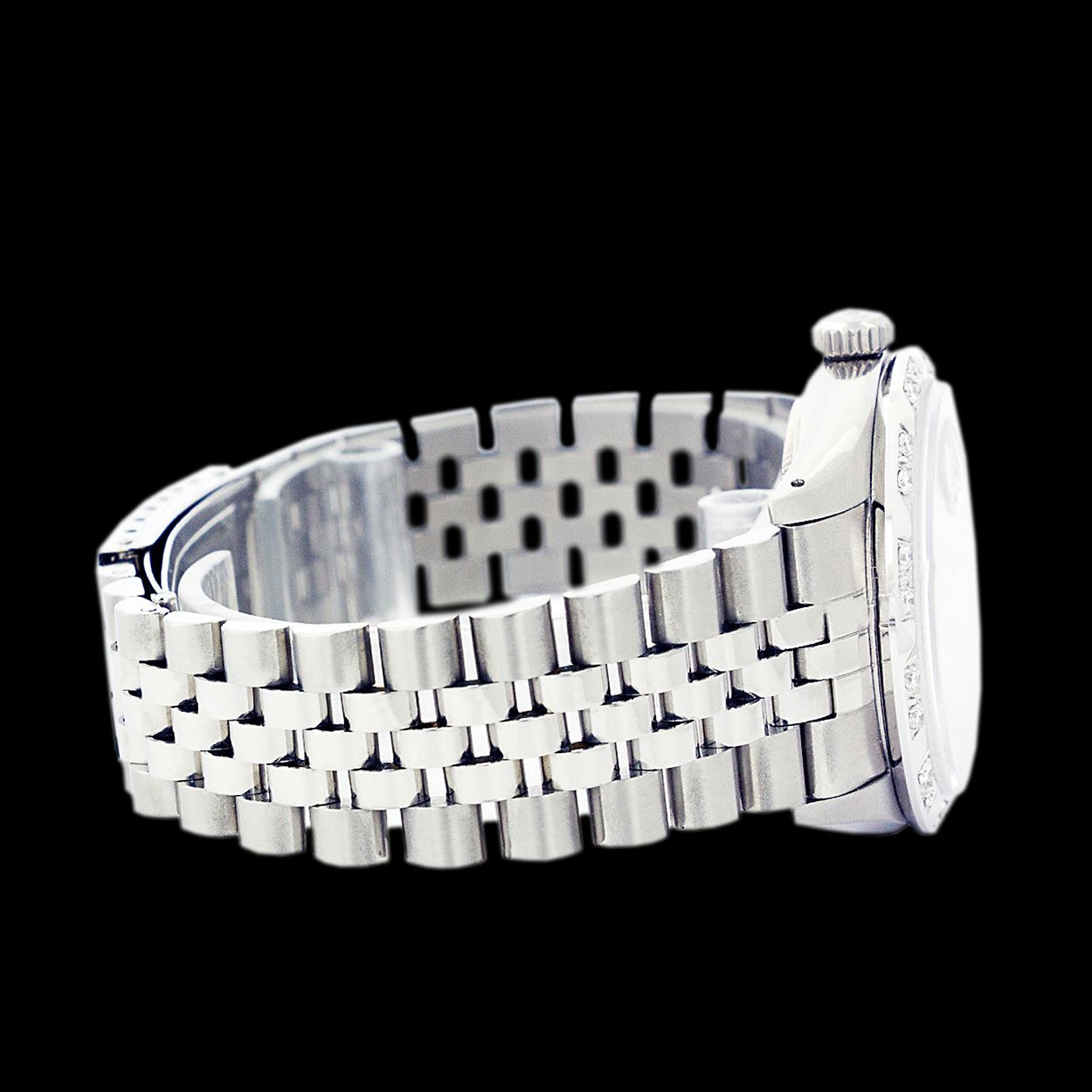 WATCH DETAILS: ITEM: WatchBRAND: RolexTYPE: Stainless SteelFEATURE: QuickSetMODEL: DateJustMADE: Swiss MadeGENDER: Men'sCONDITION: Pre-OwnedFUNCTION: DateDIAL COLOR: Silver JubilieeHOUR MARKERS: Arabic 6,9BEZEL TYPE: Pyrimid Custom Made Diamond Bezel BEZEL STONE: Diamond G-VVS1 BEZEL MATERIAL: 18K GoldBRACELET TYPE: Jubilee BRACELET MATERIAL: Stainless SteelCLASP TYPE: Folding ClaspCLASP MATERIAL: Stainless SteelCASE STONE: CASE SIZE: 36mmCRYSTAL: Scratch Resistance Sapphire CrystalMOVEMENT: Automatic (Self Winding)CALIBER: 3035CROWN TYPE: Screw Down CrownWATER RESISTANCE: Waterproof to 10 ATM/100 meters/330 feetMODEL #: 16014SKU #: AMSJQS34We Buy/Sell/Trade Valuable watches, Please call us