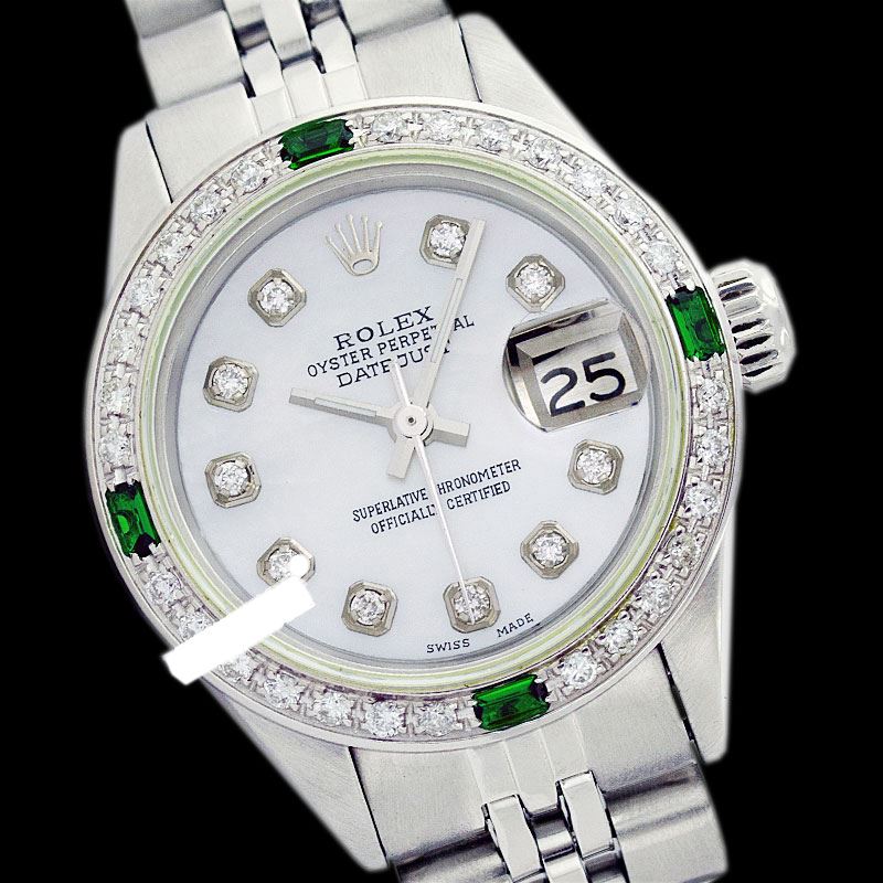 WATCH DETAILS: ITEM: WatchBRAND: RolexTYPE: Stainless SteelFEATURE: QuickSetMODEL: DateJustMADE: Swiss MadeGENDER: Men'sCONDITION: Pre-OwnedFUNCTION: DateDIAL COLOR: whiteHOUR MARKERS: 10 Round Custom Made DiamondBEZEL TYPE: Custom Made Diamond & Emerald BezelBEZEL STONE: Diamond 1 CTW G-VVS1 & 4 Colombian EmeraldBEZEL MATERIAL: 18K GoldBRACELET TYPE: Jubilee BRACELET MATERIAL: Stainless SteelCLASP TYPE: Folding ClaspCLASP MATERIAL: Stainless SteelCASE STONE: CASE SIZE: 36mmCRYSTAL: Scratch Resistance Sapphire CrystalMOVEMENT: Automatic (Self Winding)CALIBER: 3035CROWN TYPE: Screw Down CrownWATER RESISTANCE: Waterproof to 10 ATM/100 meters/330 feetMODEL #: 16014SKU #: AMSJQS165We Buy/Sell/Trade Valuable watches, Please call us