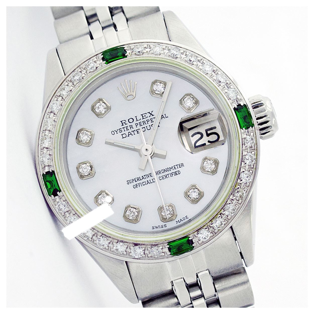 REF-521H4W ---- Rolex Men's Stainless Steel, QuickSet, Diam Dial & Diam/Emerald BezelThis watch is in Excellent Condition.