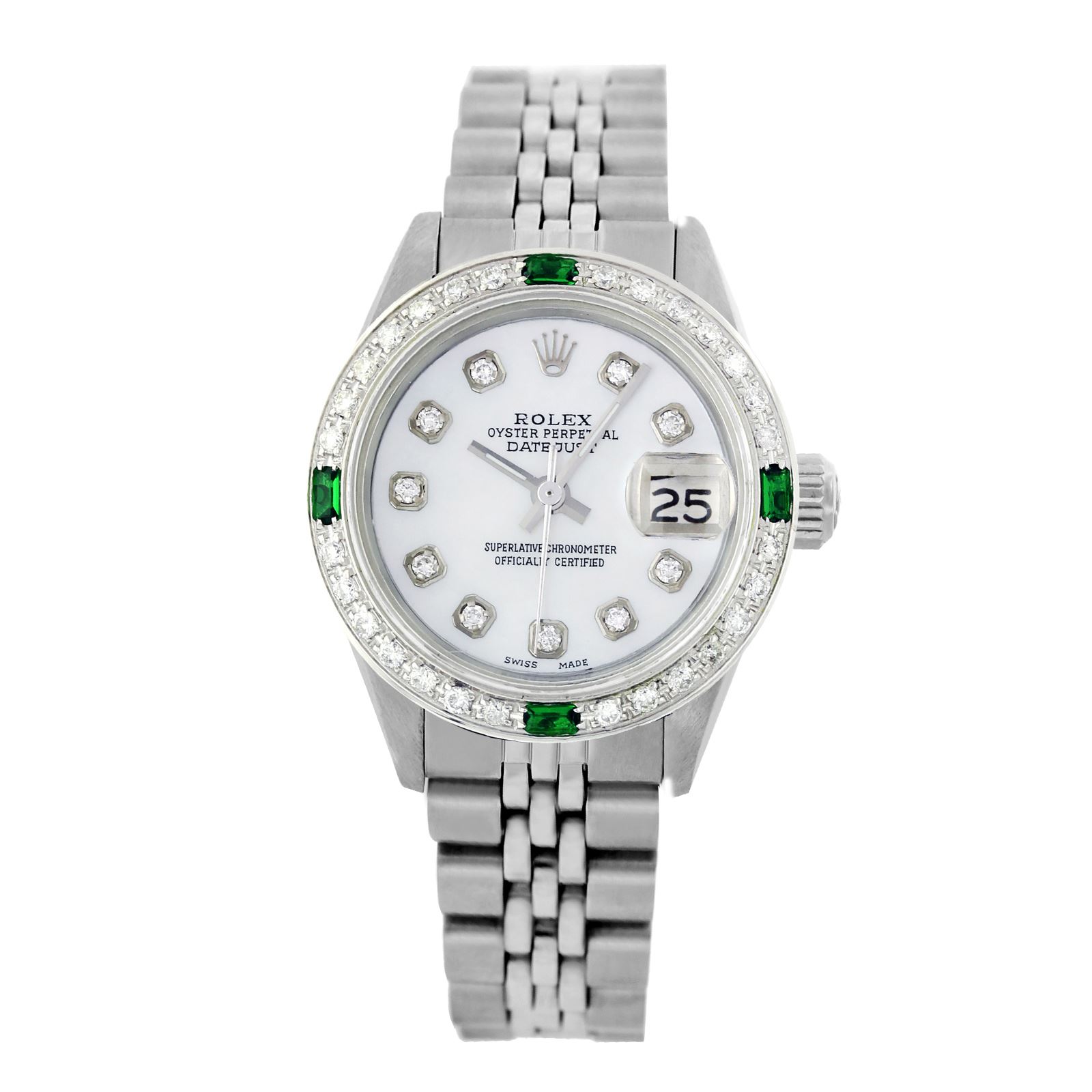 REF-557X4Y ---- Rolex Men's Stainless Steel, QuickSet, Diam Dial & Diam/Emerald BezelThis watch is in Excellent Condition.
