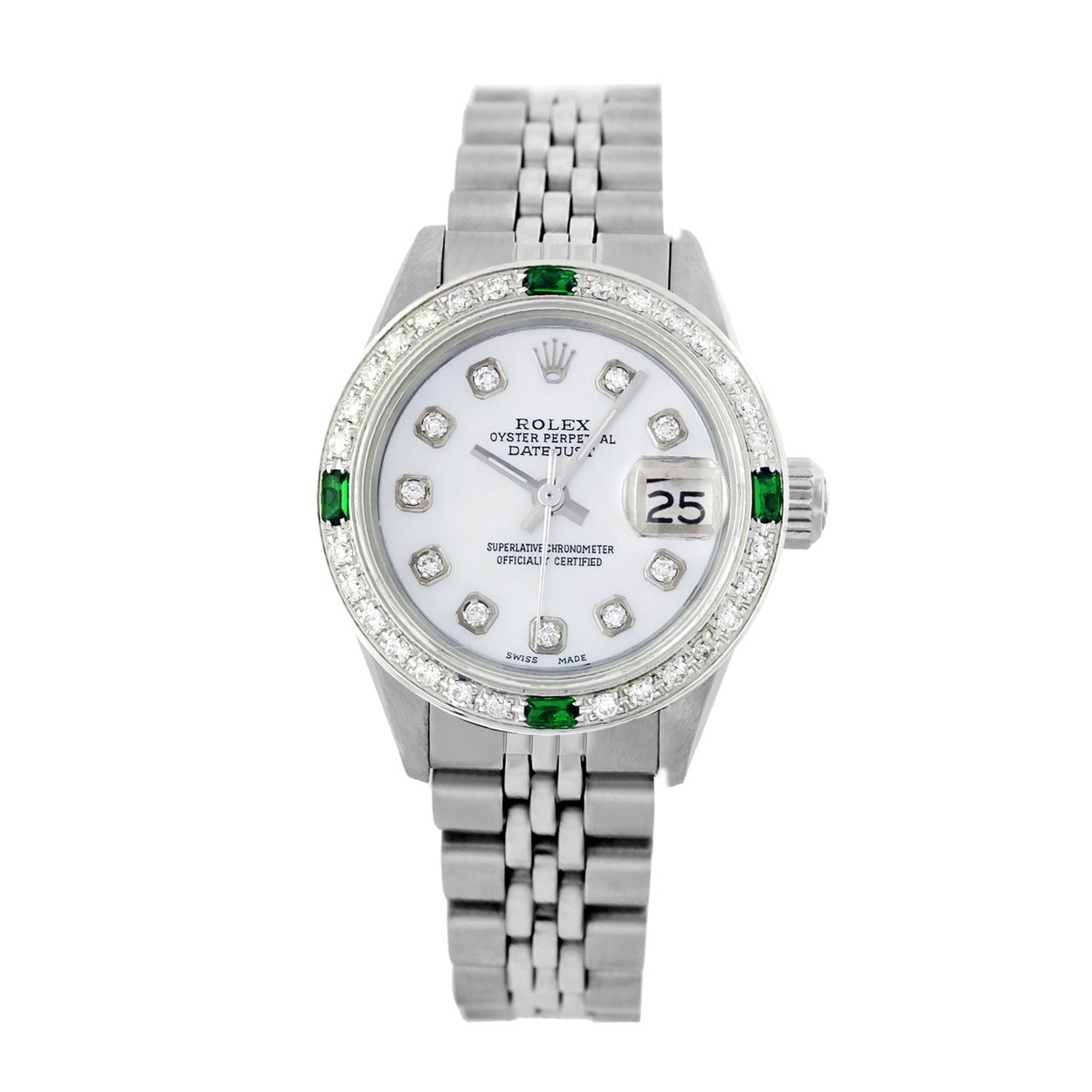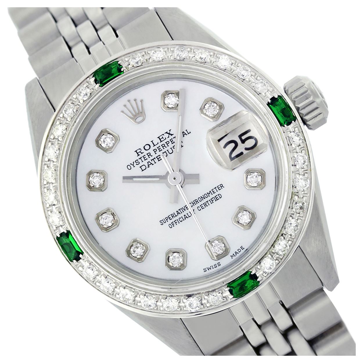 REF-557X4Y ---- Rolex Men's Stainless Steel, QuickSet, Diam Dial & Diam/Emerald BezelThis watch is in Excellent Condition.