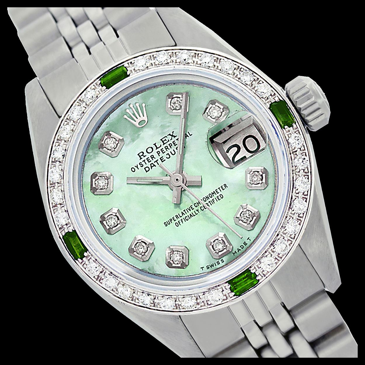 Rolex Men's Stainless Steel, QuickSet, Diam Dial & Diam/Emerald BezelThis watch is in Excellent Condition.
