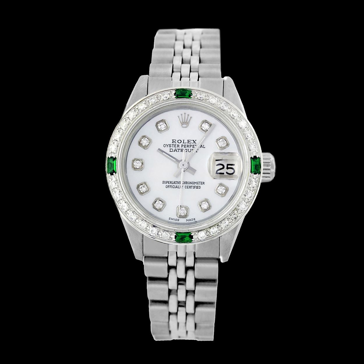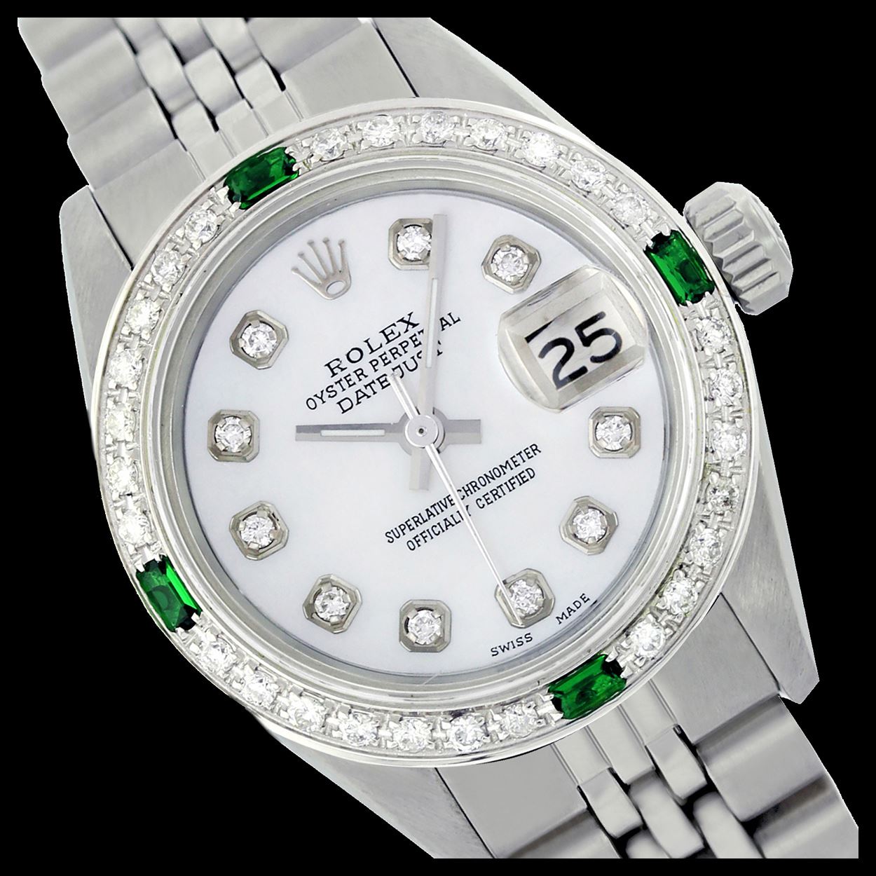 Rolex Men's Stainless Steel, QuickSet, Diam Dial & Diam/Emerald BezelThis watch is in Excellent Condition.