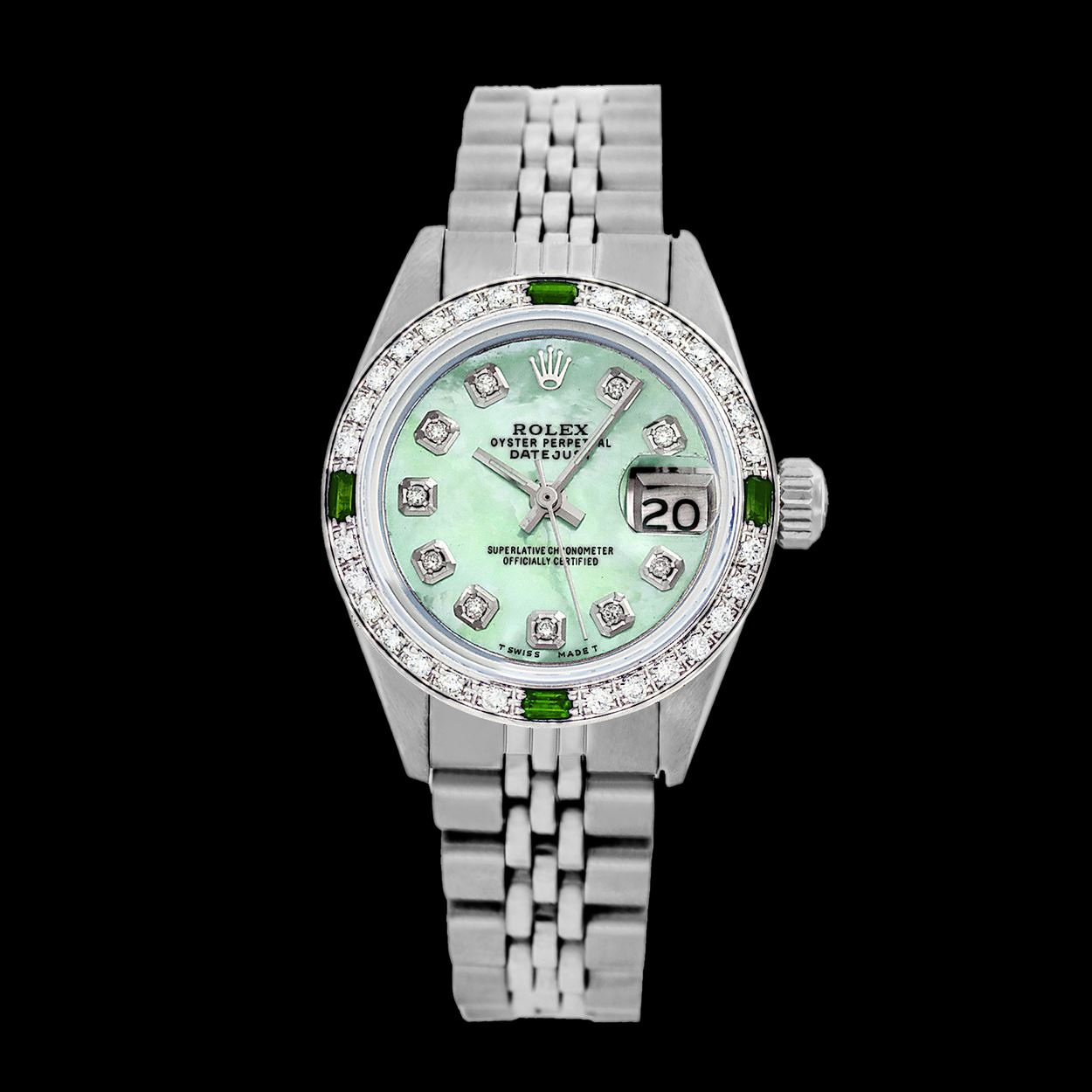 Rolex Men's Stainless Steel, QuickSet, Diam Dial & Diam/Emerald BezelThis watch is in Excellent Condition.