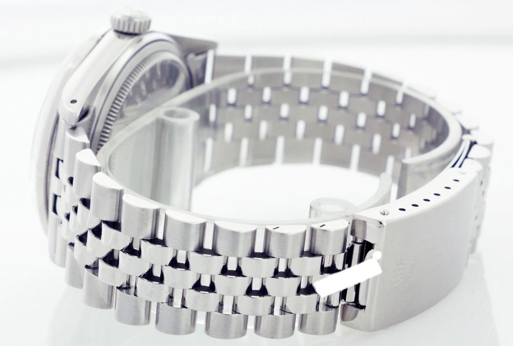 WATCH DETAILS: ITEM: WatchBRAND: RolexTYPE: Stainless SteelFEATURE: QuickSetMODEL: DateJustMADE: Swiss MadeGENDER: Men'sCONDITION: Pre-OwnedFUNCTION: DateDIAL COLOR: GreyHOUR MARKERS: 10 Round Custom Made DiamondBEZEL TYPE: Custom Made Diamond & Sapphire BezelBEZEL STONE: Diamond 1 CTW G-VVS1 & Ceylon Blue SapphireBEZEL MATERIAL: 18K GoldBRACELET TYPE: Jubilee BRACELET MATERIAL: Stainless SteelCLASP TYPE: Folding ClaspCLASP MATERIAL: Stainless SteelCASE STONE: CASE SIZE: 36mmCRYSTAL: Scratch Resistance Sapphire CrystalMOVEMENT: Automatic (Self Winding)CALIBER: 3035CROWN TYPE: Screw Down CrownWATER RESISTANCE: Waterproof to 10 ATM/100 meters/330 feetMODEL #: 16014SKU #: AMSJQS131We Buy/Sell/Trade Valuable watches, Please call us